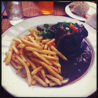 Après une matinée comment dire EPUISANTE pour ne pas dire autre chose, rien de tel qu’une petite terrasse sous le soleil tapant du plateau ( il existe aussi une salle climatisée).