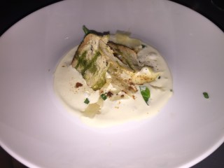 Les entrées ont été servies assez rapidement, pour ma part j ai testé les ravioles de champigons et fèves juste magnifiques! Un pur délice.
