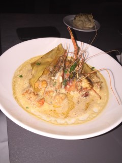 J ai également goûté en entrée le saumon à l aneth, le crabe aux pamplemousse et en plat le risotto aux ecrevisses et le carré d agneau avec sa purée de pomme de terre tout était bon bien assaisonné, le chef ne lésine pas sur les épices et le mariage des saveurs est bien recherché.