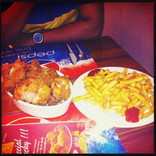 Toujours à la recherche d’un poulet pané façon KFC, je me suis retrouvée cette fois-ci à Aklé au vallon en face de Pako. Ce fast food de poulet pané appartient à un libanais ayant vécu au Canada; Ce qui explique certaines spécialités telle que la poutine( portion de frite agrémenté d une sauce).