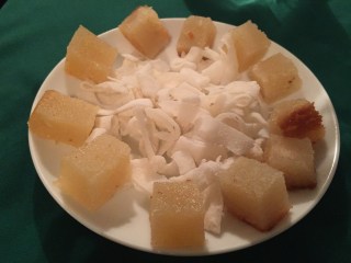 Cette assiette de gateau de manioc nous a été offerte avec l addition, les gateaux se laissent manger et nous permettent de terminer le repas sur une bonne note(petite confession je commence à être addict à ces gâteaux :-))