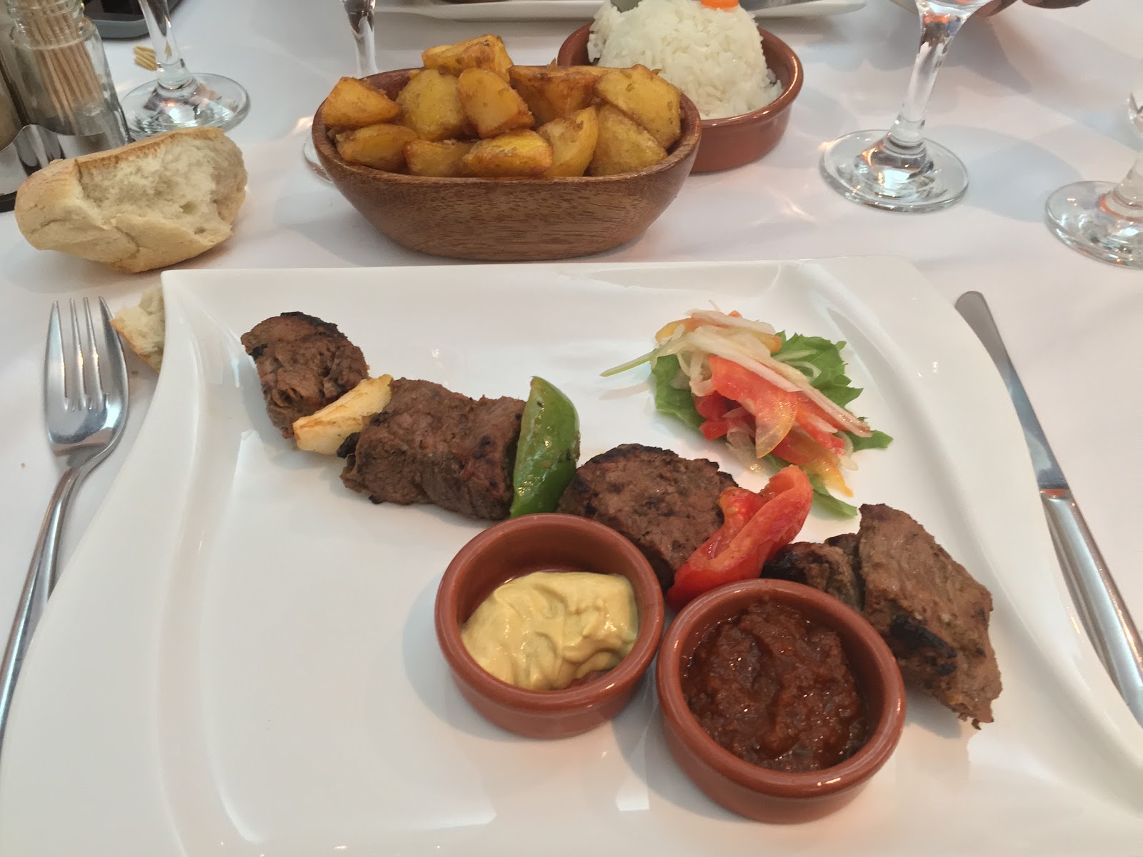 En plat j ai choisis un classique, la brochette de boeuf importé accompagnée de pomme de terre sautées.