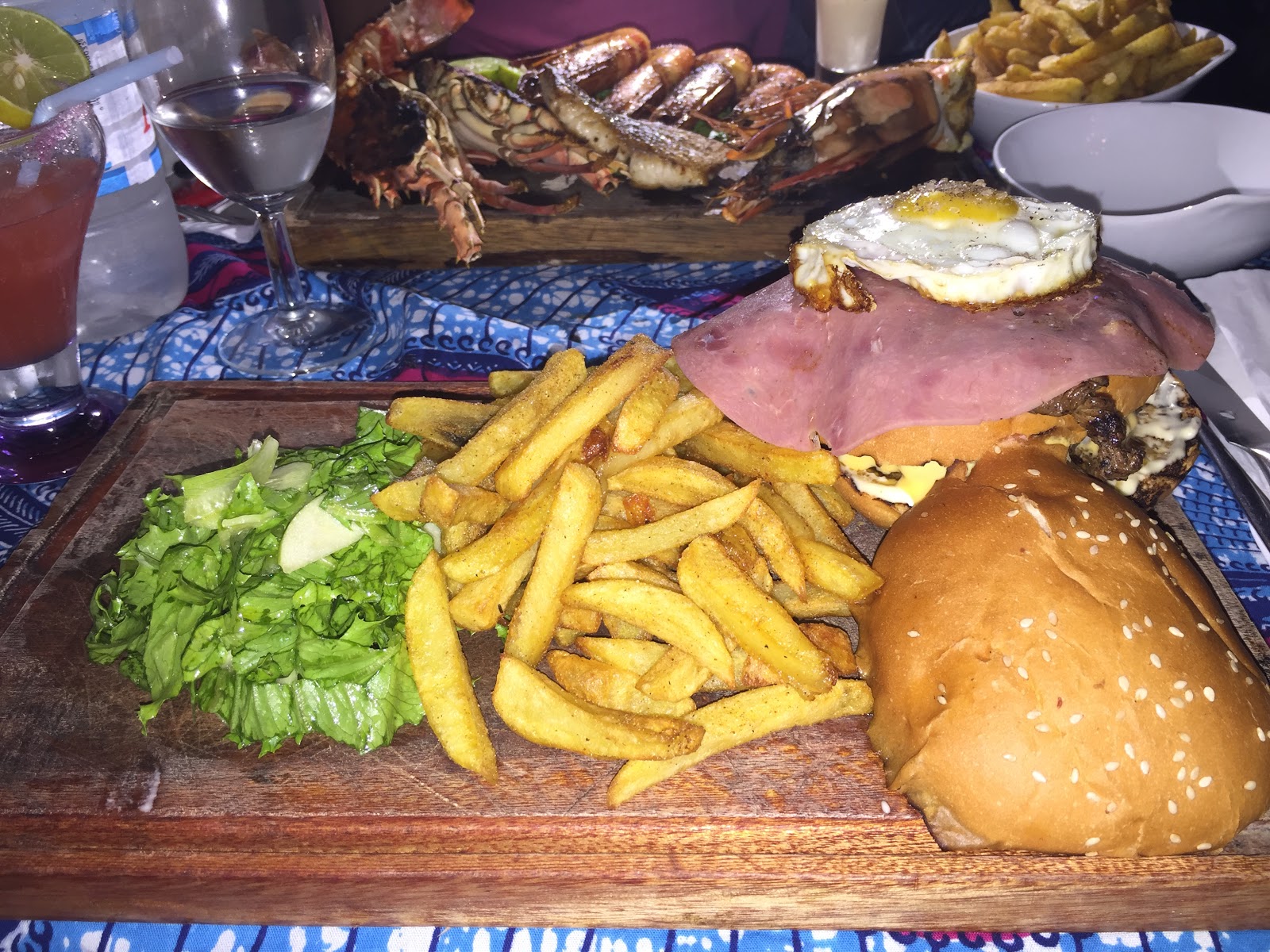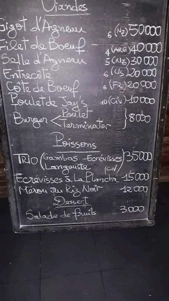 Prix: burger 8 000fcfa /assiette de fruit de mer 25 000fcfa