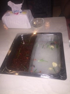 Le grand grand plus de cette fondue est qu il y a deux bacs à soupe, l’un normal et l’autre assez épicé et quand je dis assez c était vraiment ASSEZ mais c était tellement bon que je me surprenais à manger et plus apprécier le côté pimenté lol