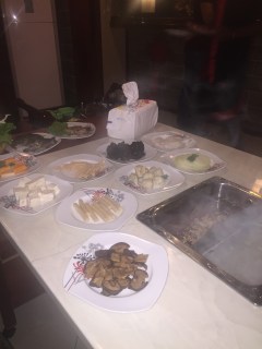 Et là, une farandole de mets nous a été servis, des légumes, bâtonnet de riz, champignons, concombres, du tofu, des calamars,de la viande de boeuf, crabes… Le tout accompagné de vermicelle de riz.