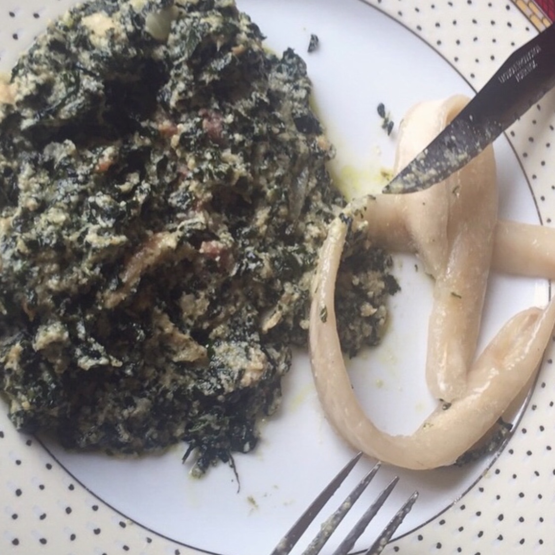 Le n dole est un plat camerounais à base de feuille de Vernonia qui se consomme avec du riz ou des bâtons de manioc communément appelé miandoh.