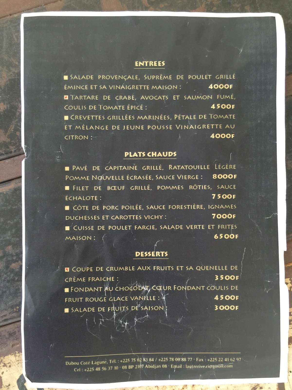 Le principe de la maison d hôte c est de partager les parties communes de la maison( piscine, repas) avec tous les autres clients, c est un concept assez sympa qui permet de tisser des liens mais c est encore plus cool si vous y allez entre amis. Le restaurant de l’hôtel propose une petite carte simple mais l’essentiel y est… ar contre pour notre séjour des buffets nous ont été proposés à la place pour des raisons de rapidité d’exécution des commandes. L’idée n’était pas mal mais cher à mon goût: 15 000fcfa avec au menu brochette de merou, de boeuf, kedjenou avec attieke, alloco et en dessert on a eu droit à une salade de fruit.