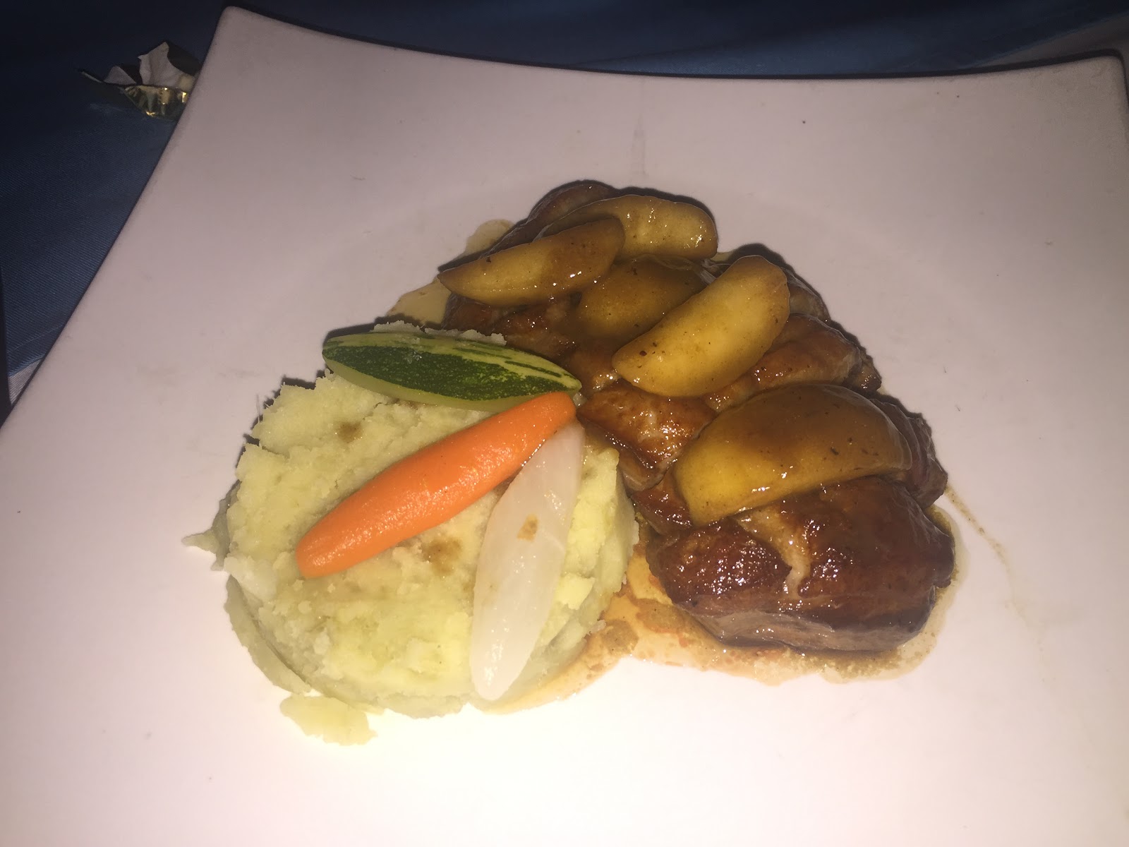 En plat le magret de canard aux pommes avec sa purée de patate douce, le magret était énorme ils n ont pas lésiné sur la quantité à mon grand plaisir par contre le sucré/salé pomme/magret avait du mal à passer mais en faisant abstraction des pommes ce fut un régal, cuisson légèrement rosé respectée et la purée de patate un vrai délice.