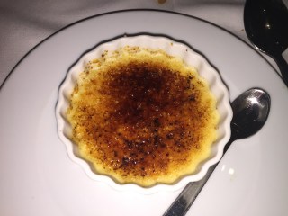 J ai tout de même gardé une petite place pour le dessert, mon coeur s est tourné vers la crème brulée qui était tres bonne, légère, bien caramélisée et se laissait deguster.