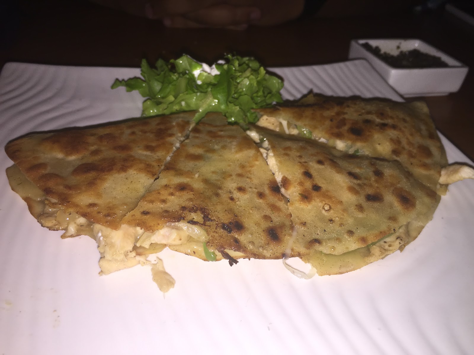 J ai ainsi pris en entrée des quesadillas au poulet, un peu grasses à mon goût mais bonnes.