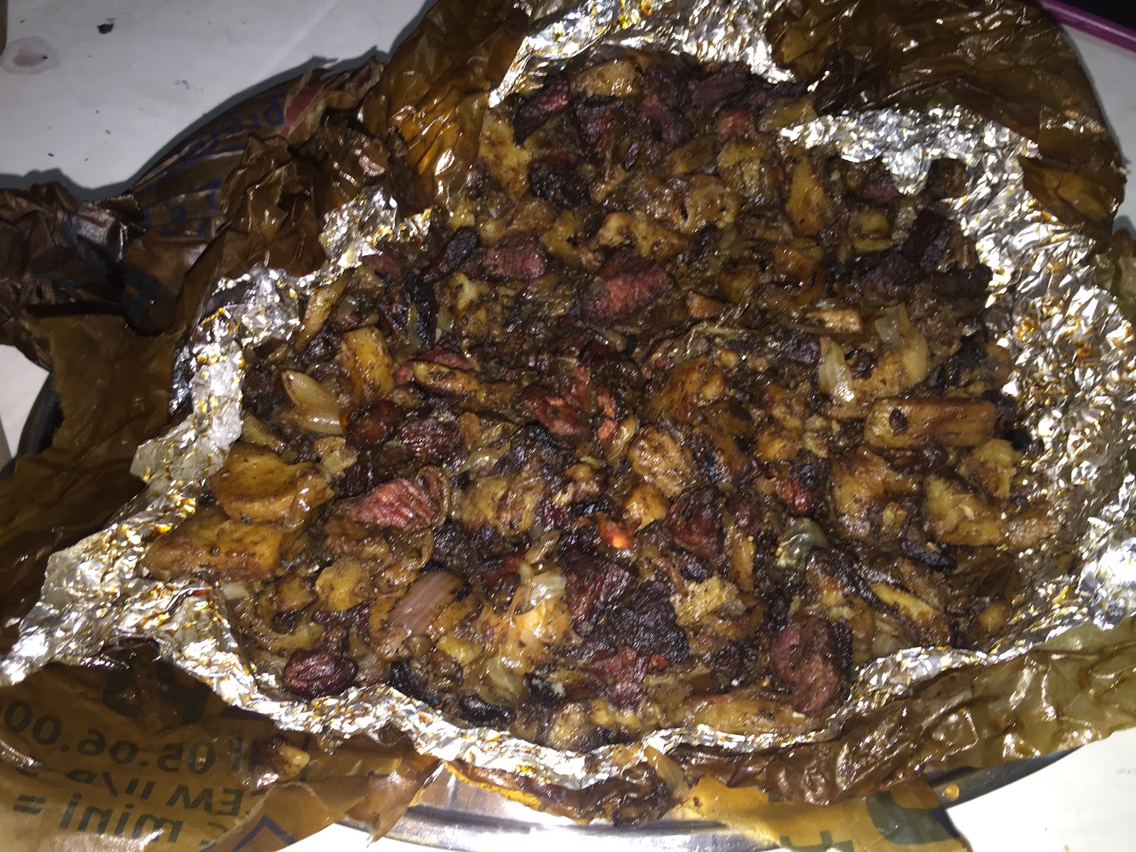 La particularité de Chez Souley2 est une fois votre viande choisie et cuite une première fois, on l emballe avec des pommes de terre pour une deuxième cuisson.