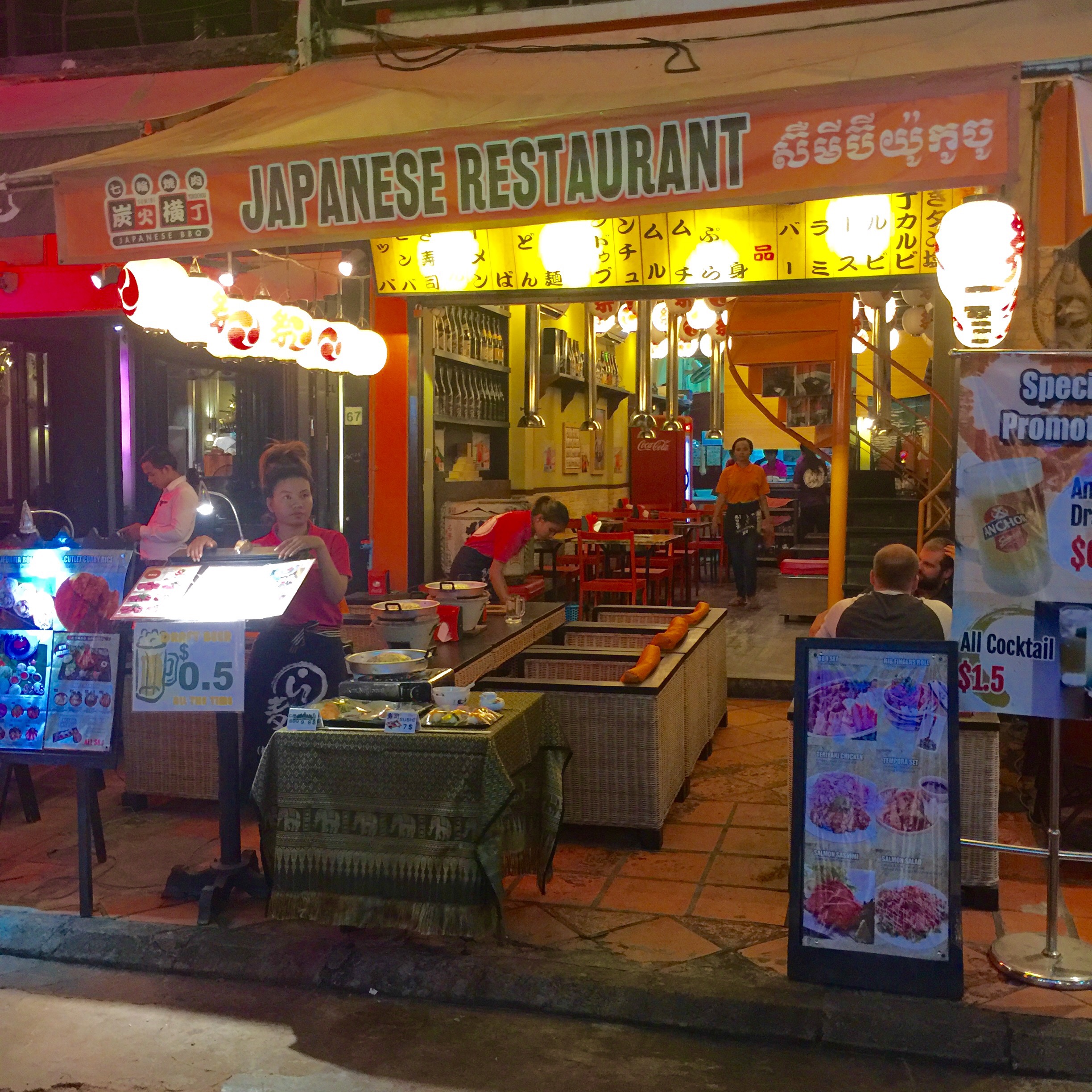 La majorité des restaurants ou nous sommes allées se trouvent dans le centre ville dont certains sur la principale rue « The PUB STREET » comme son nom l’indique la rue des pubs ou un grand nombre de restaurant khmer, japonais, indien, italien se trouvent: