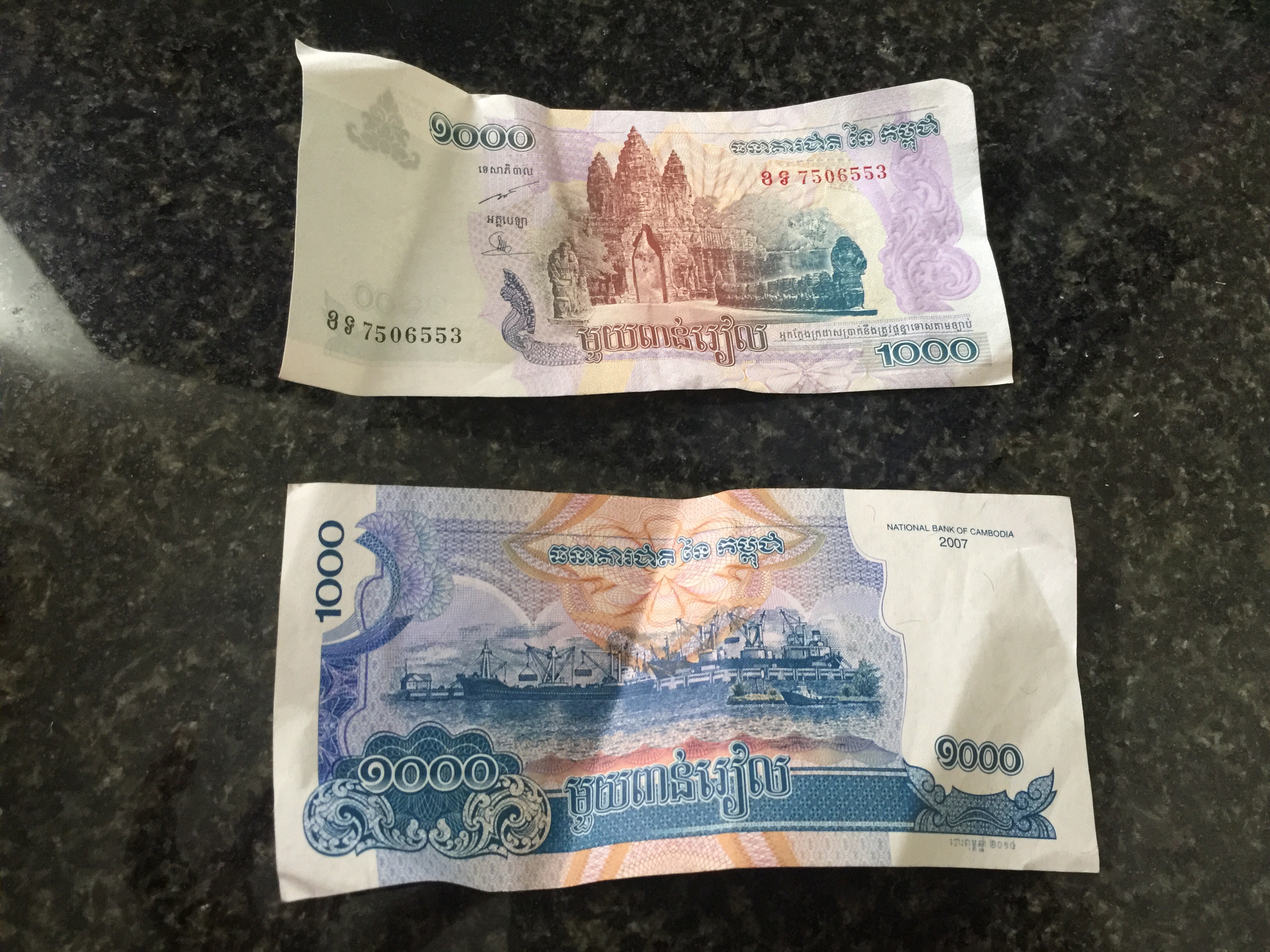 Le Cambodge dispose de leur propre monnaie mais vous pouvez effectuer tous vos achats en Dollars US. Vous n’avez pas besoin de convertir vos dollars par contre pour des monnaies en dessous d’un dollars, on vous donnera de la monnaie locale.