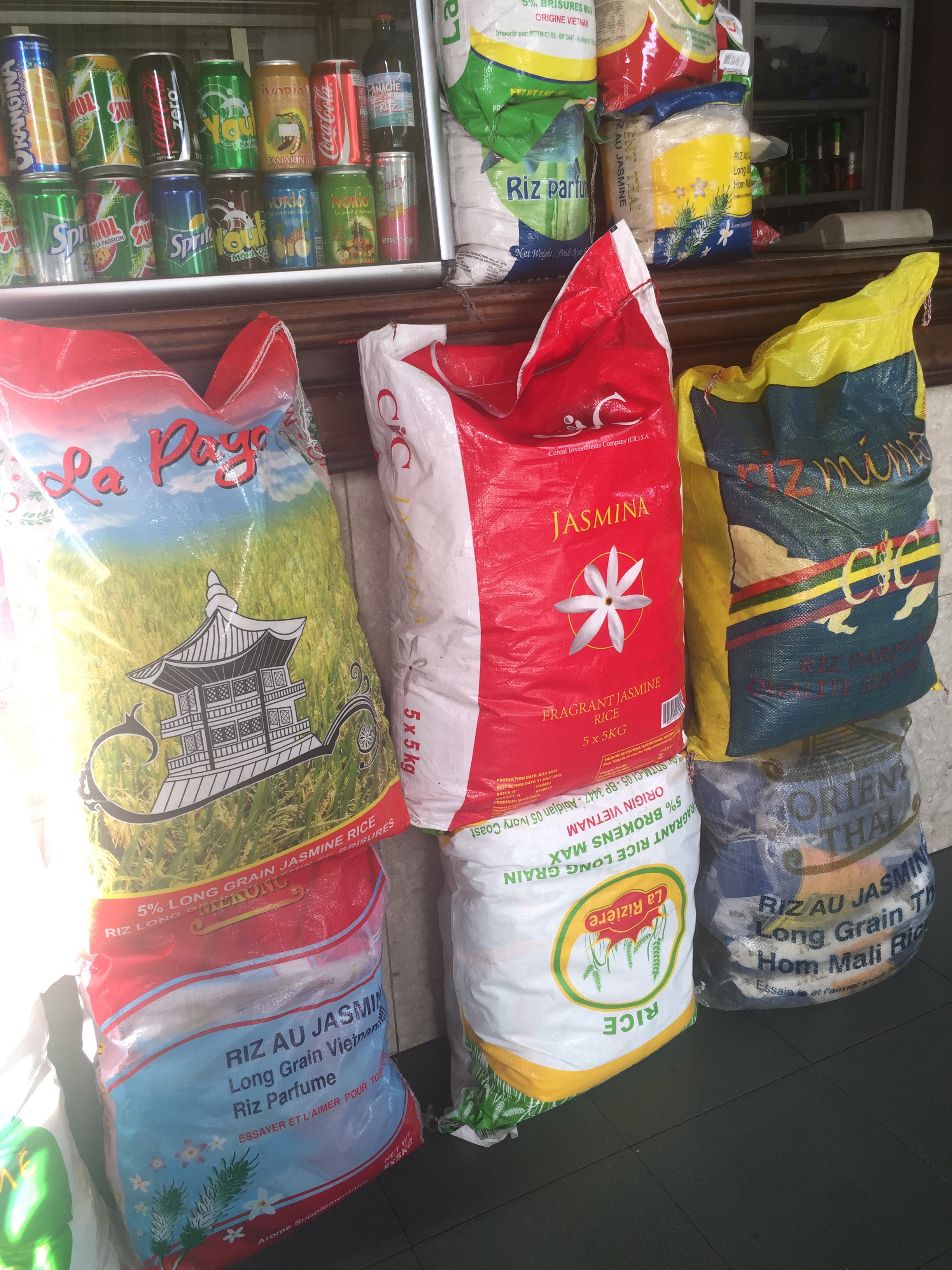 Ils vendent pleins d’articles asiatiques tel que des thés minceurs… Et aussi des sacs de riz comme vous pouvez le voir(on en achetait souvent là bas quand j’etais plus jeune).