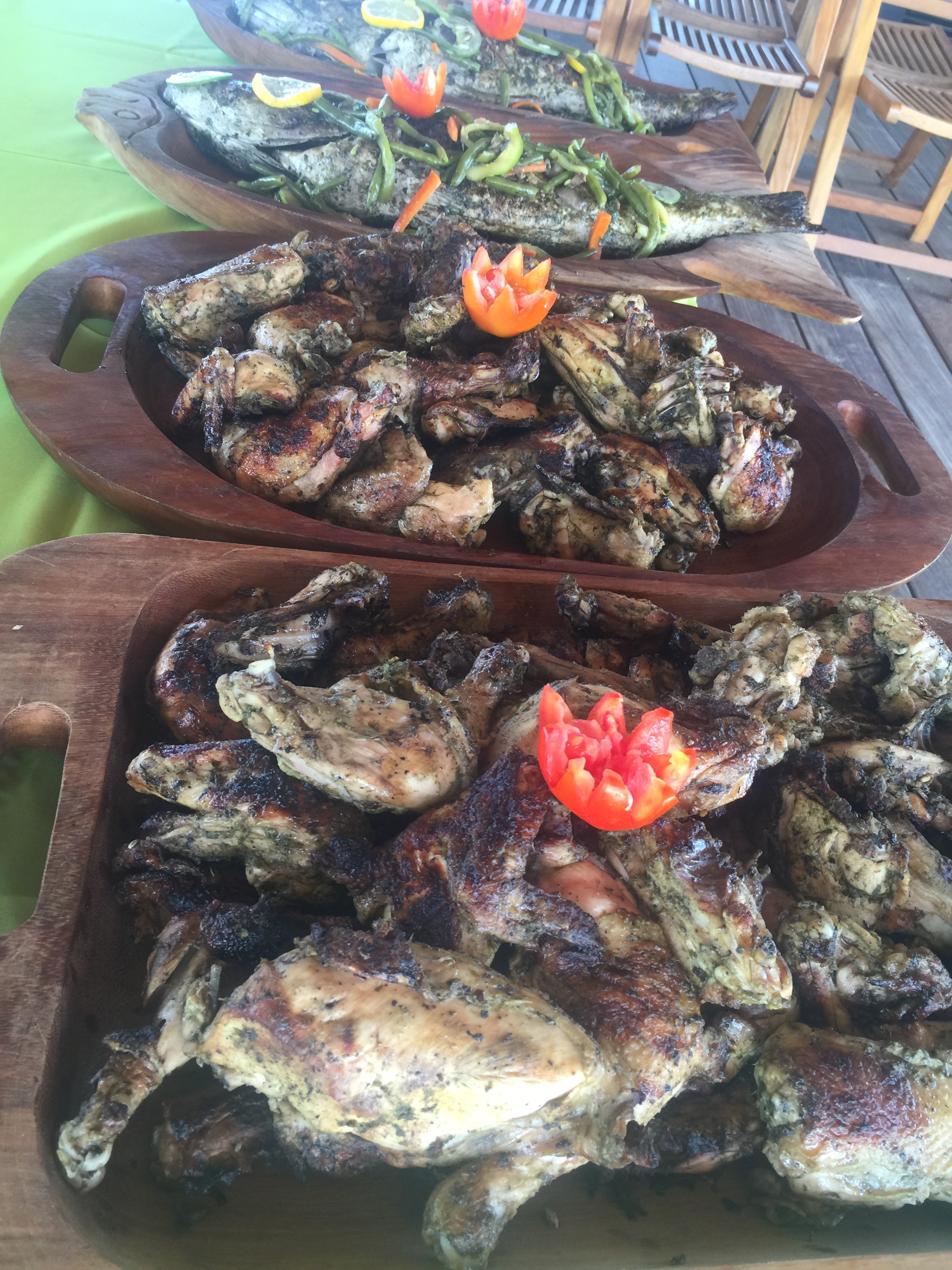 Des grillades(poulets et poissons braisés) accompagnés d’allocos, frites, attiékés.