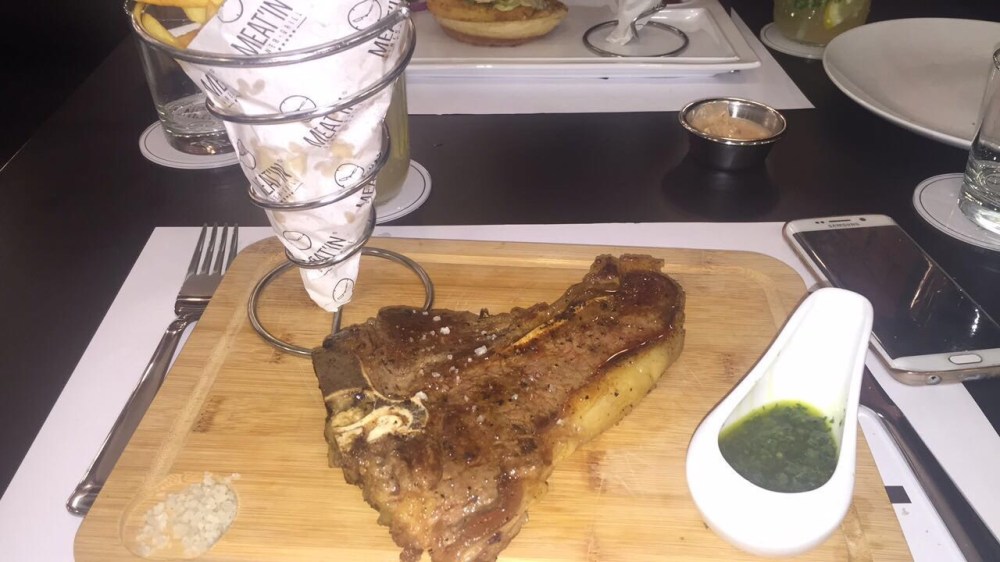 En plat, j’ai pris un T-bones(450g) avec la sauce aux herbes piquantes; Cuisson maitrisée, assaisonnement au top, seul bémol la taille de la viande, j’ai l’habitude des T bones de minimum 600g là je suis un peu restée sur ma faim.