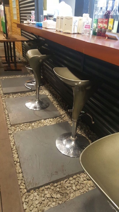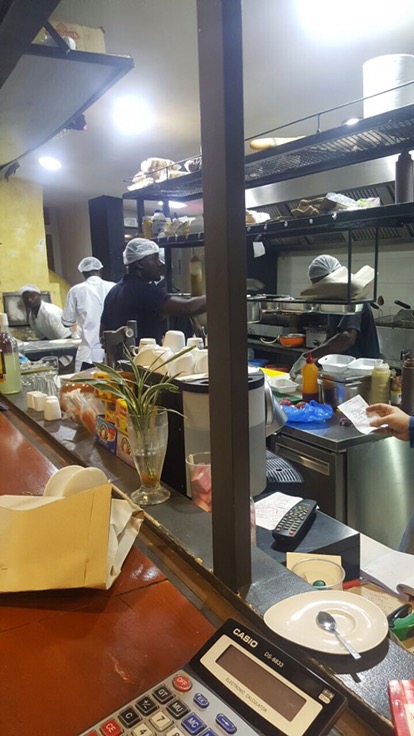 J’avais un petit creux et je passais par là, je me suis dis pourquoi ne pas la tester en même temps. Pour un fast food en pleine rue, c’est qu’à même « close » car ils ont bien aménagé l’espace, avec le bar, la terrasse et l’espace baby foot;