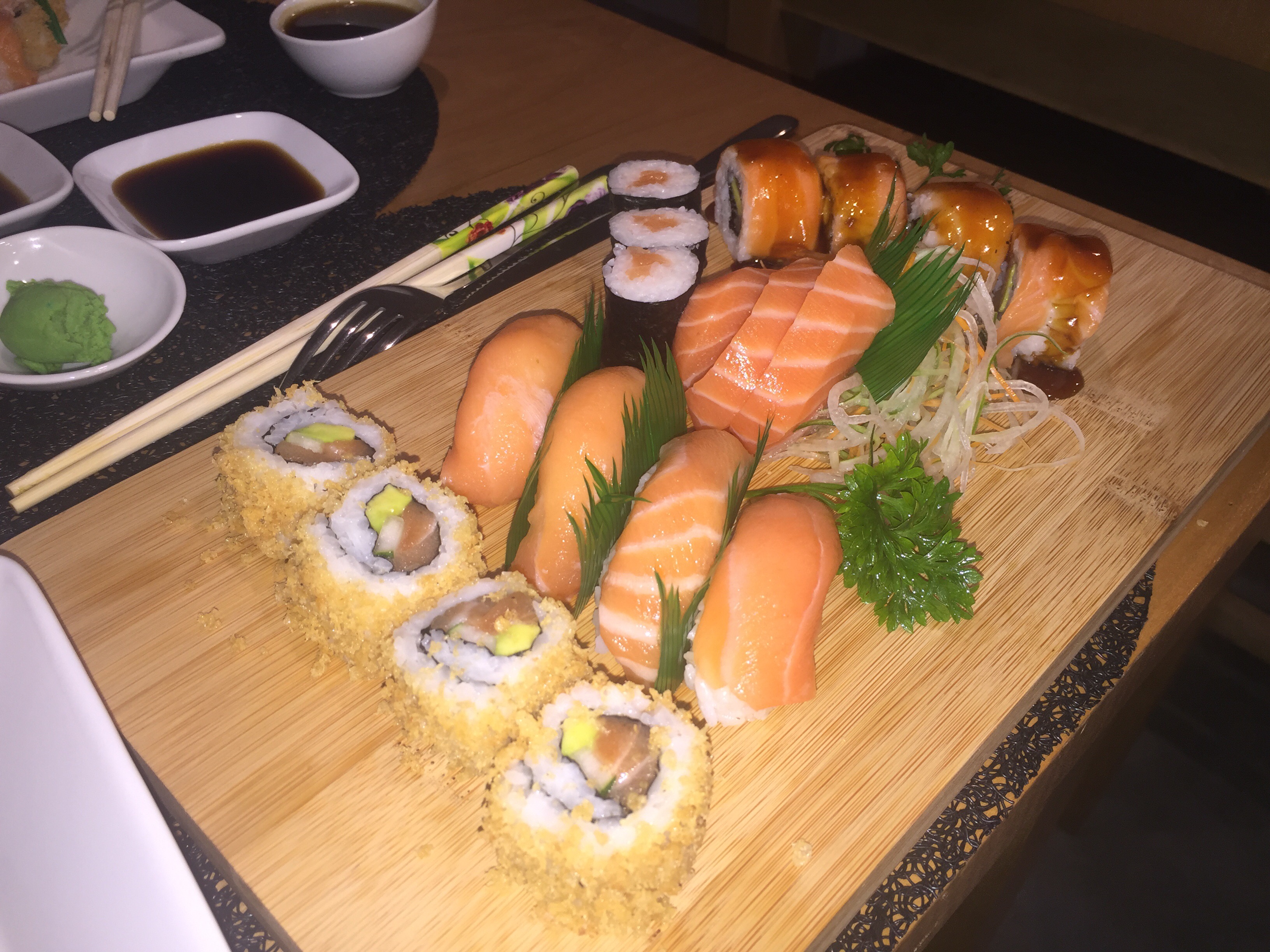 Le saumon était frais, et les tranches épaisses de plus contrairement à WASABI leur crispy maki est plutôt pas mal.