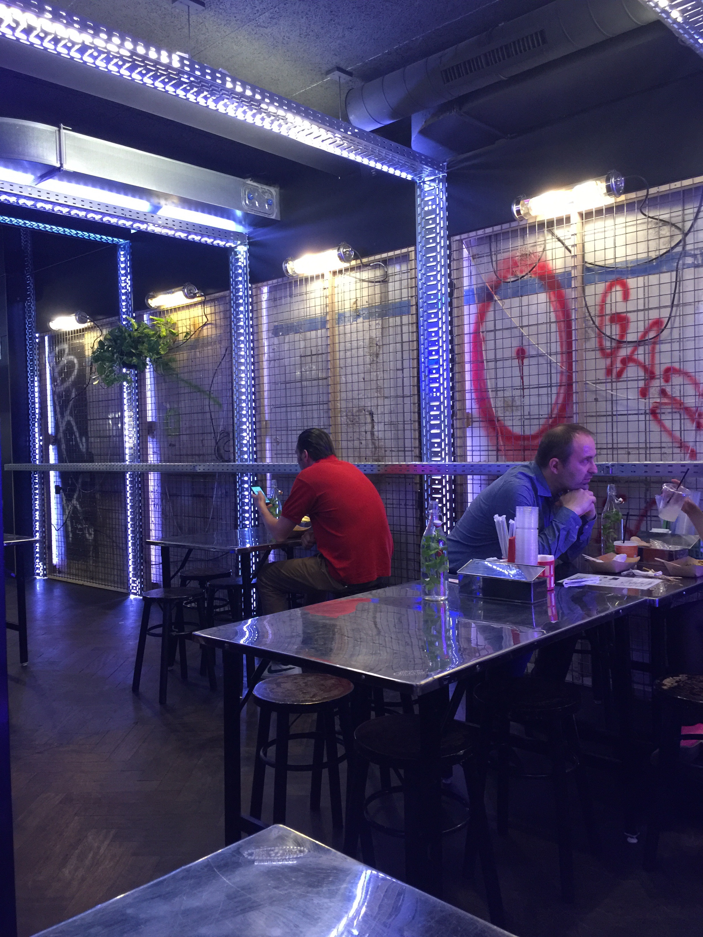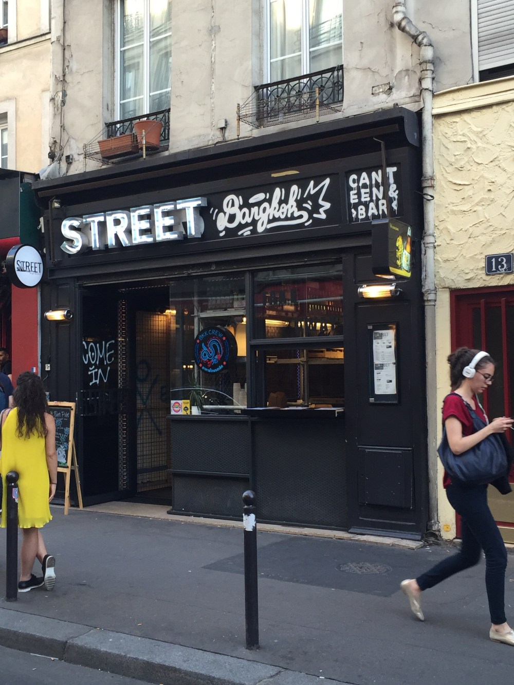 C’était « the adress »à tester, situé à Bastille au 13 rue de la roquette, street bangkok propose des plats thailandais dans des barquettes reproduisant ainsi le mode de restauration des rues de bangkok comme son nom l’indique.La déco caractérise bien l’enseigne on se croirait presque en pleine rue, dans une zone industrielle; C’est bien travaillé!