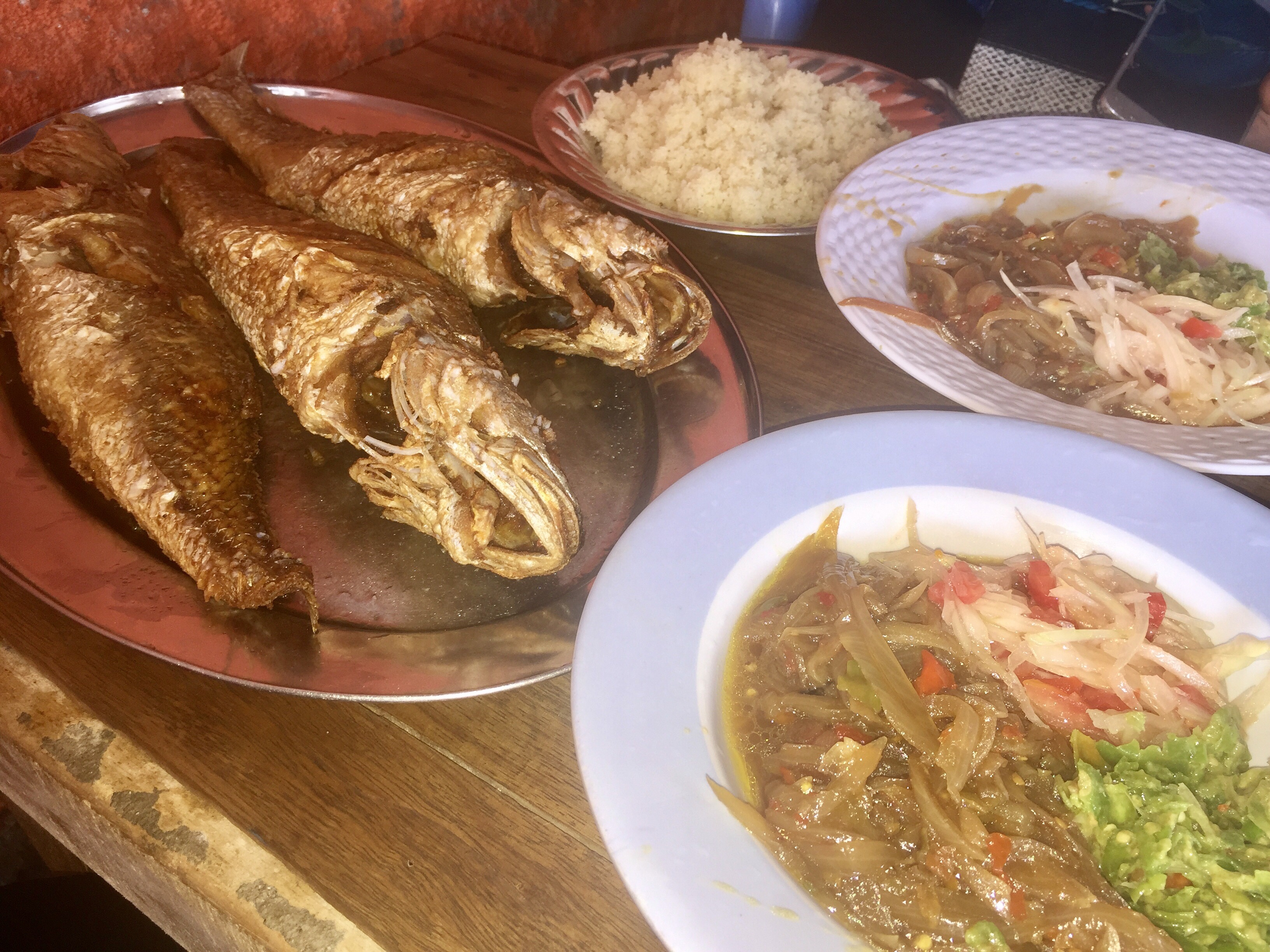 De plus le prix est un atout majeur ( le prix des poissons varie de 2500 Fcfa à 4000 Fcfa) car de nombreuses adresses font le poisson frit maintenant mais les proposent à des prix exorbitants.