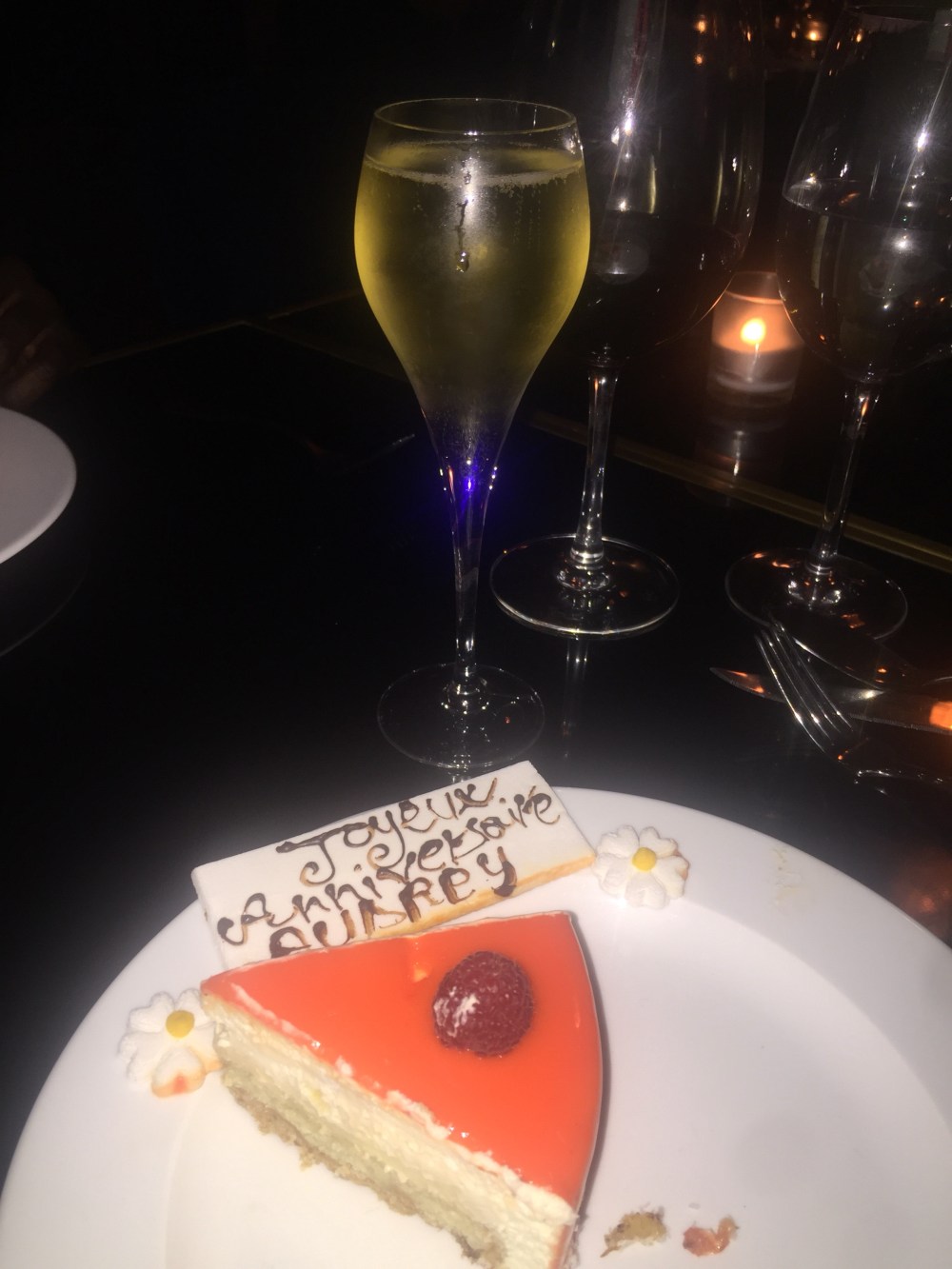 J’ai beaucoup aimé cette adresse, par contre la chef de salle de l’étage n’était pas trop commode et m’a gâché ma surprise, car au moment du dessert, ne sachant rien de ce qui se tramait elle viens vers moi et me demande de confirmer qu’il s’agit bien d’un anniversaire et si c’était bien le mien; Sachant lire entres les lignes j’ai tout de suite compris que j’allais avoir un cadeau… et ça n’a pas râté!!