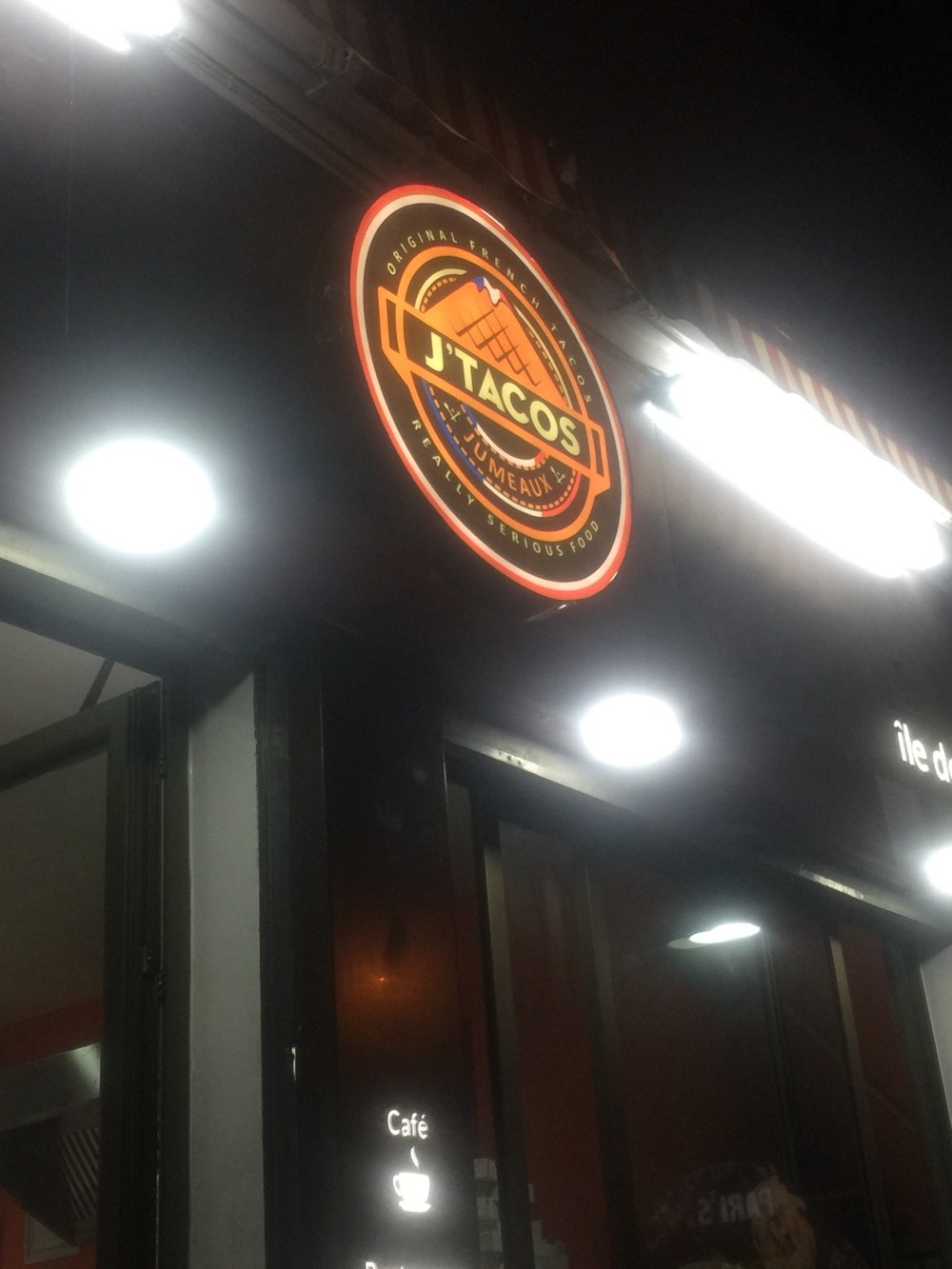 Exactement le même logo que l’enseigne française mais un élément m’intriguait le « J » au lieu du Fameux « O »Tacos et la mention « jumeaux »