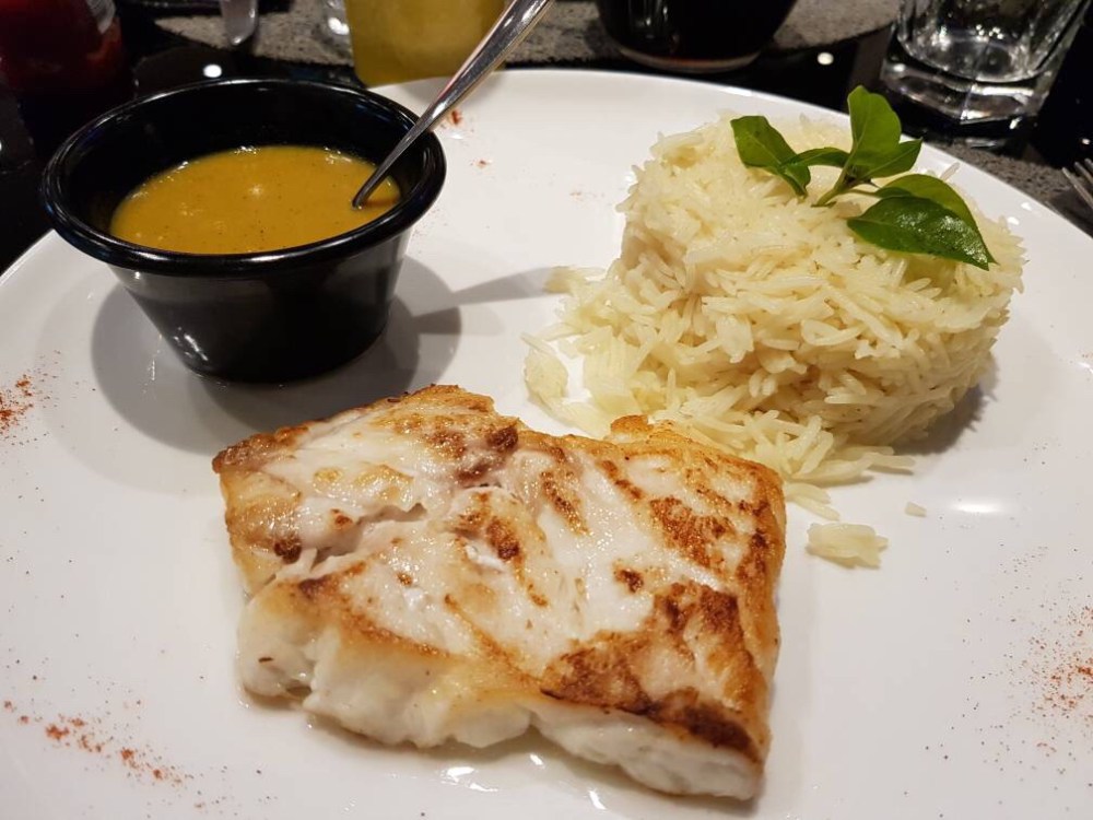 Le plat du jour, c etait du riz avec du mérou à la sauce safran, le riz était très bon, les grains longs et détachés(comme j’aime), le saumon était bien cuit et la sauce liait le tout parfaitement.