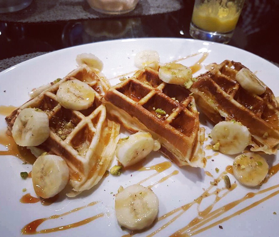 En dessert, j’ai pris les gaufrettes à la banane, je n’en avais jamais testé auparavant et mis à part le miel qui les rendaient trop sucrées c’était vraiment bon;