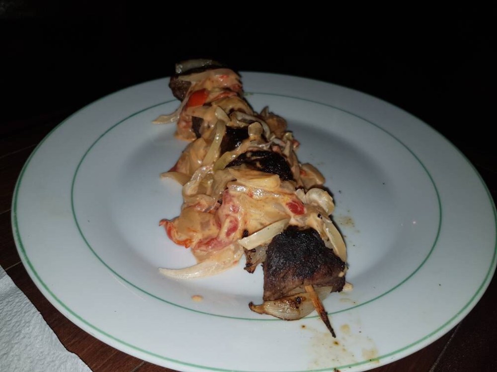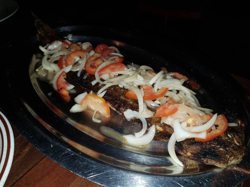 J’ai opté pour une sole braisée et mon ami une brochette de filet de boeuf avec des frites et de l’alloco.