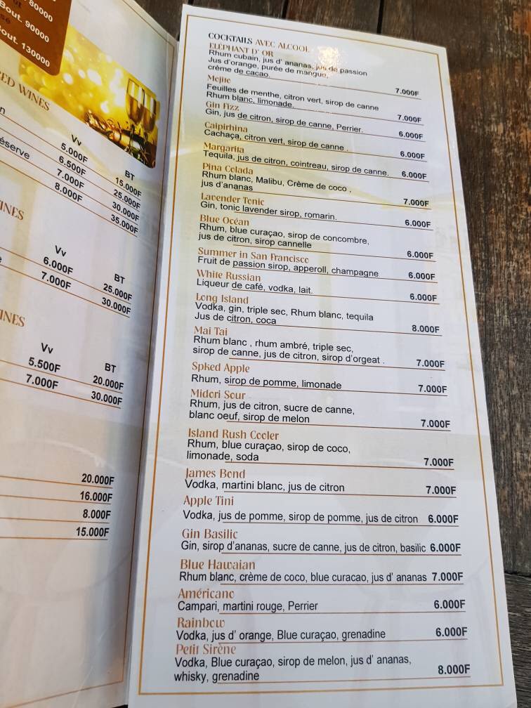 Vous avez la possibilité de commander des tapas pour accompagner vos cocktails, ces tapas proviennent du restaurant l’Eléphant d’or;