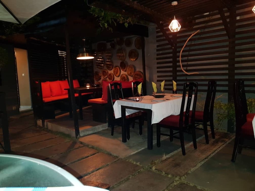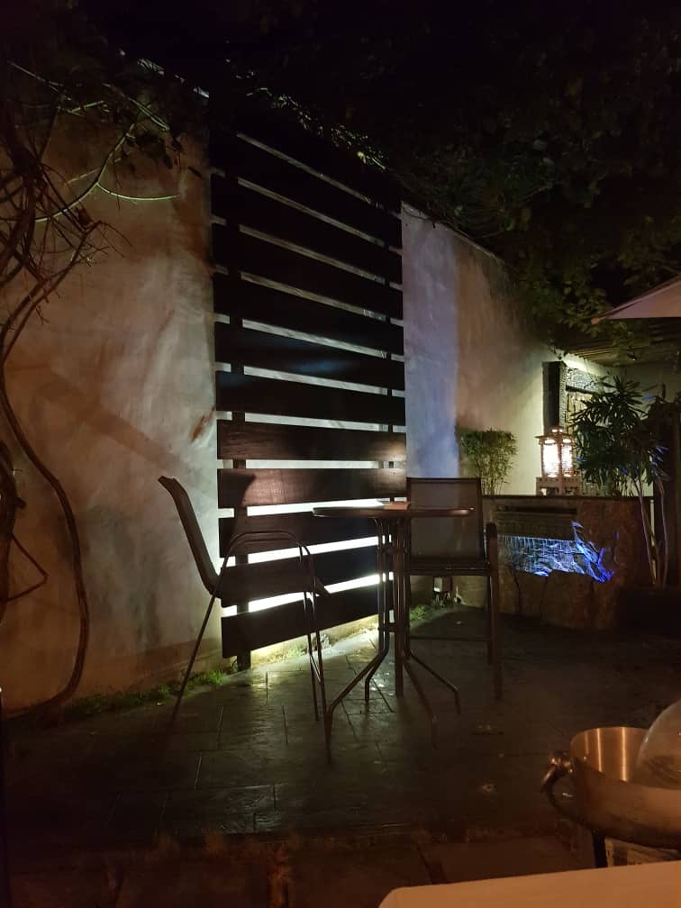 Une fois la porte ouverte, vous découvrez un jardin zen, ambiance tamisée, bougies (petite précision j’y étais un soir), petite fontaine, des tables en extérieur…bref vous avez compris le cadre est plutôt relaxant et cosy.
