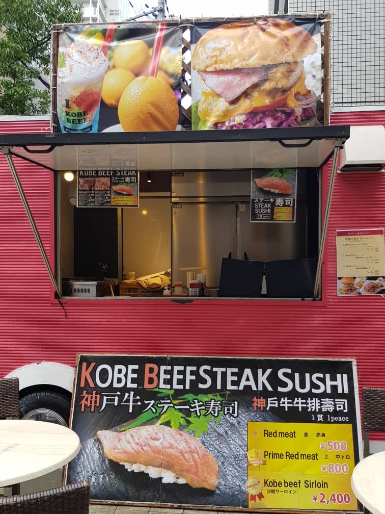 Après m’être bien ouvert l’appétit, sur quoi je tombe un stand de burger à la viande de Kobe!!!