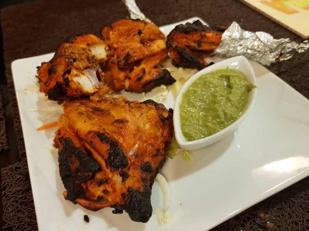 En plat, c’ était poulet tandoori et lasri au poulet.