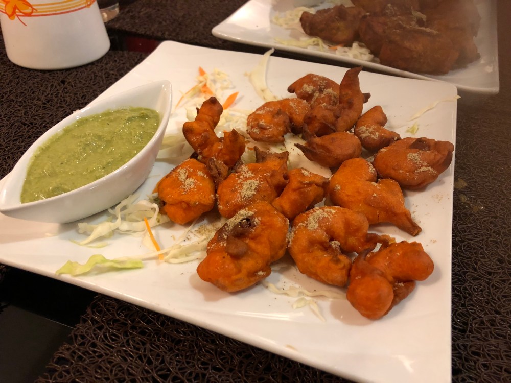 C’était super bon, surtout les crevettes qui étaient bien épicées et cette sauce verte au yaourt et basilique…un pur délice.