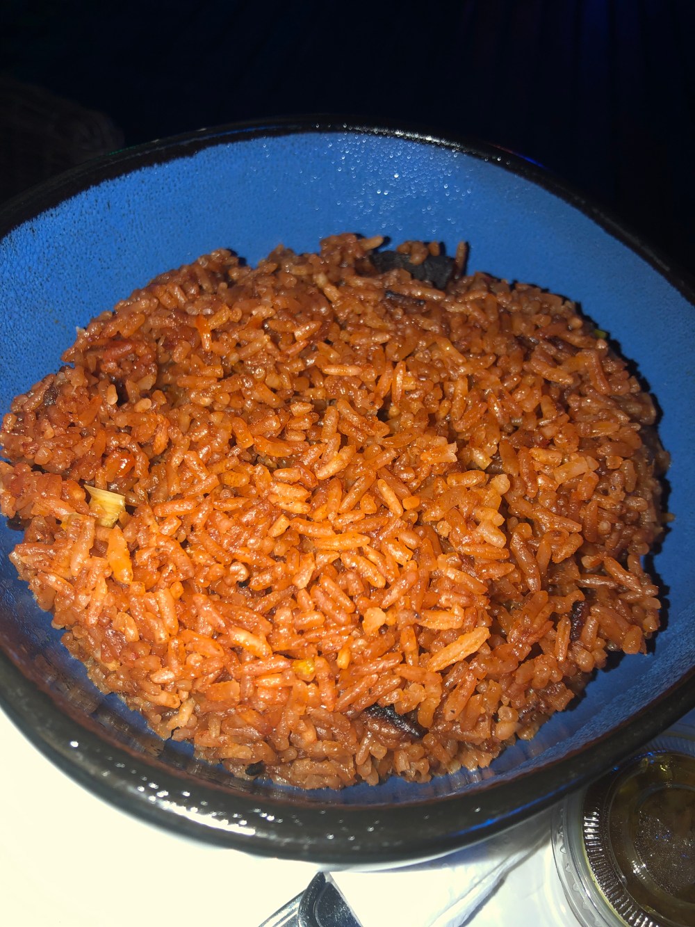 J’ai également testé des brochettes de boeuf et poulet qui était excellentes accompagnées du fameux Jollof rice, perfect combo!!