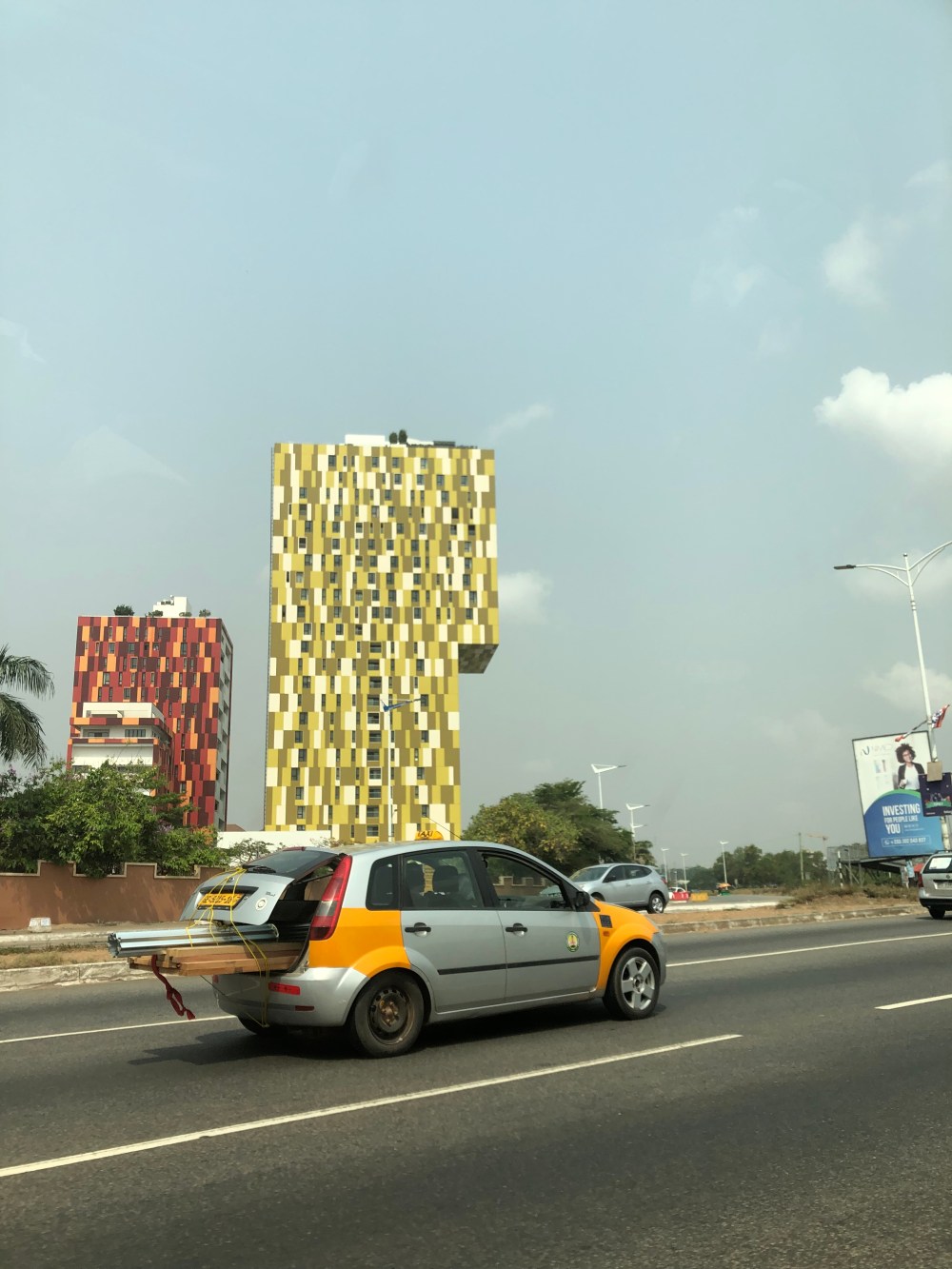 Après 45 min de vol d’Abidjan, je découvre enfin Accra, ce qui m’interpelle en premier en regardant par le hublot lors de l’attérissage c’est le manque de verdure dans la ville; En effet de nombreuses résidences ont troqué leurs espaces verts pour des carreaux!