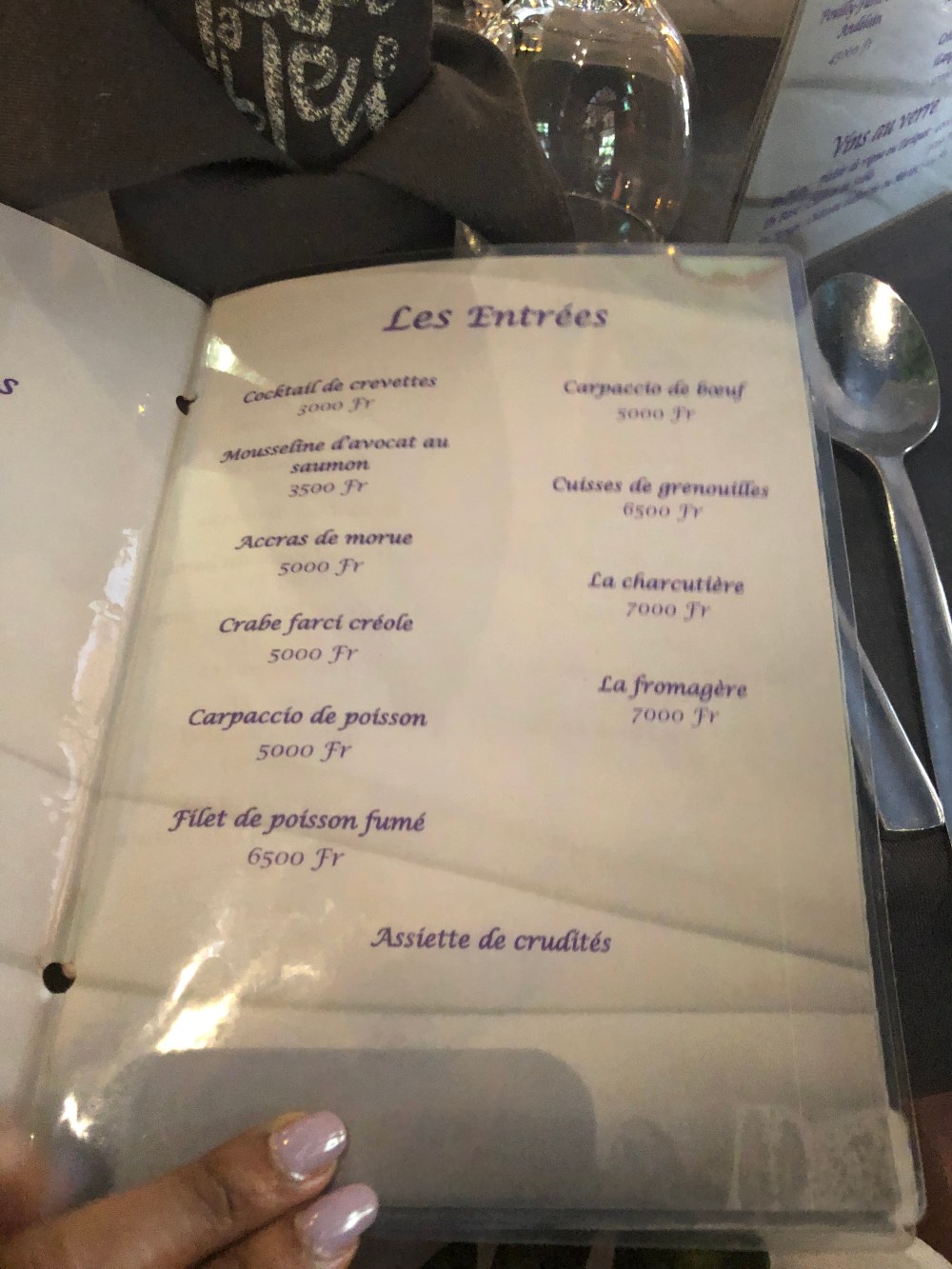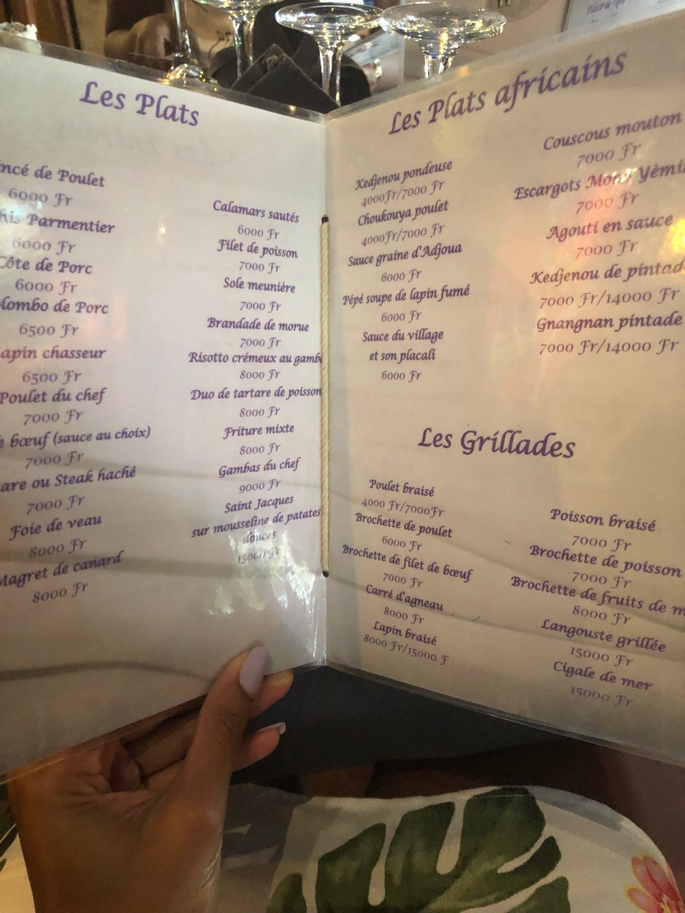 Côté carte, des fruits de mers, du poisson mais également des spécialités africaines telque des sauces etc…
