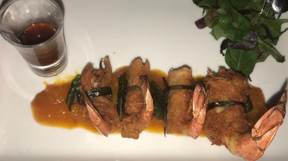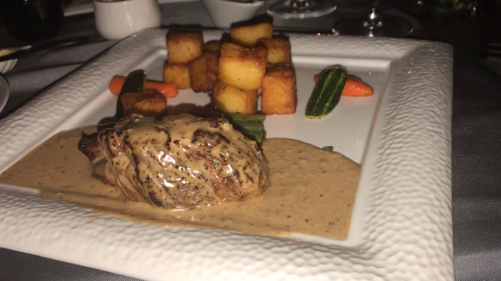 Côté carte, j’ai opté en entrée pour ce délicieux roulé de gambas et en plat pour le filet de boeuf avec ses pommes de terre sautées;