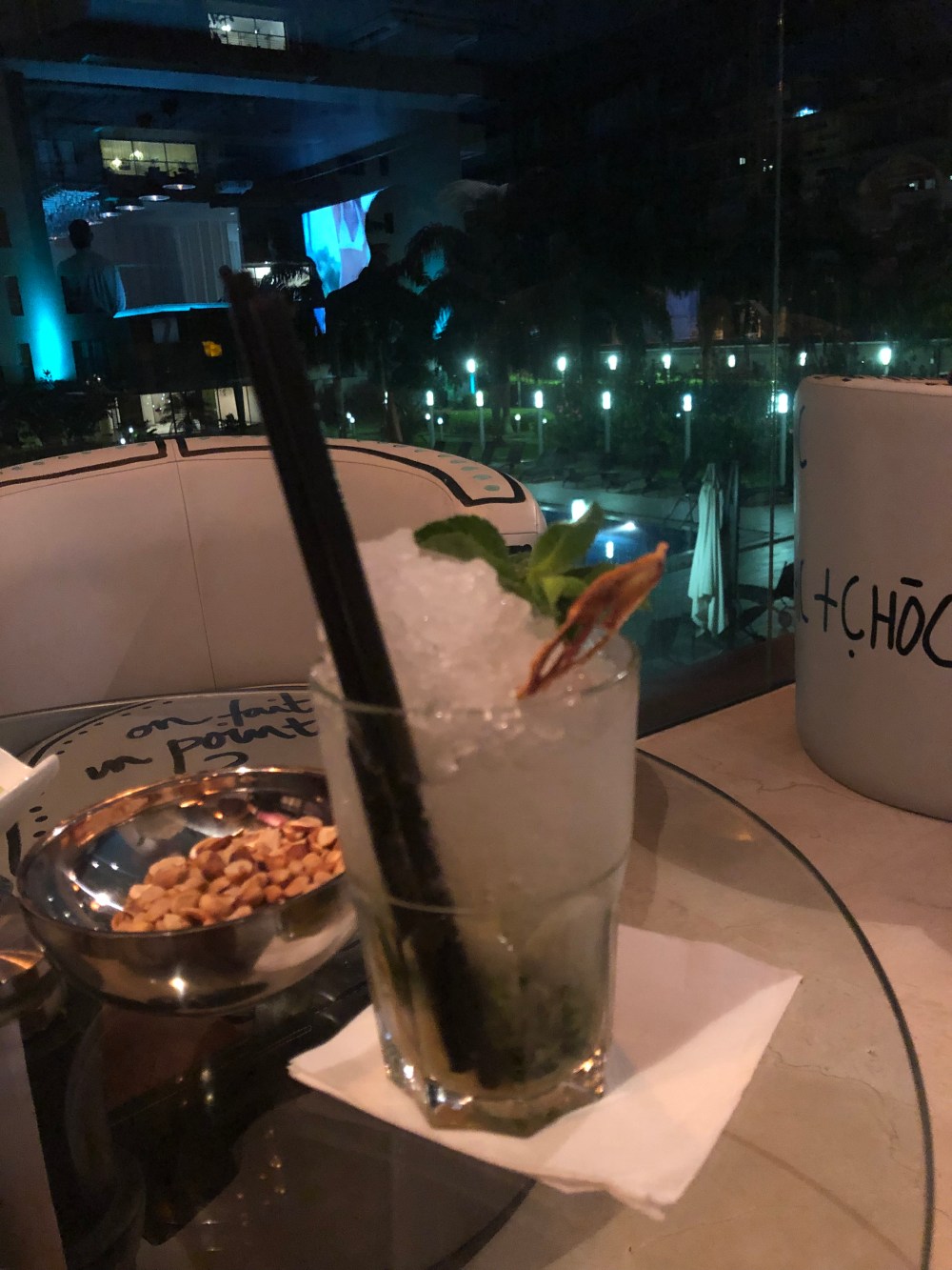 Aucune réservation à mon actif, étant de surcroît vendredi soir, le restaurant était bien entendu full; On nous a donc convié à prendre l’apéro au lounge le temps qu’une table se libère.