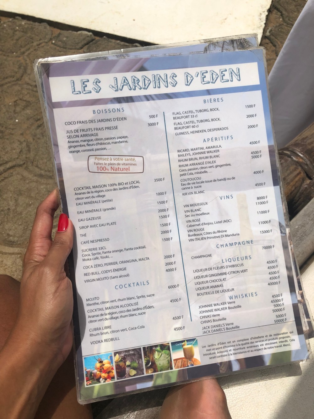 J’ai commandé un Mojito et une sole braisé avec des frites d’igname.