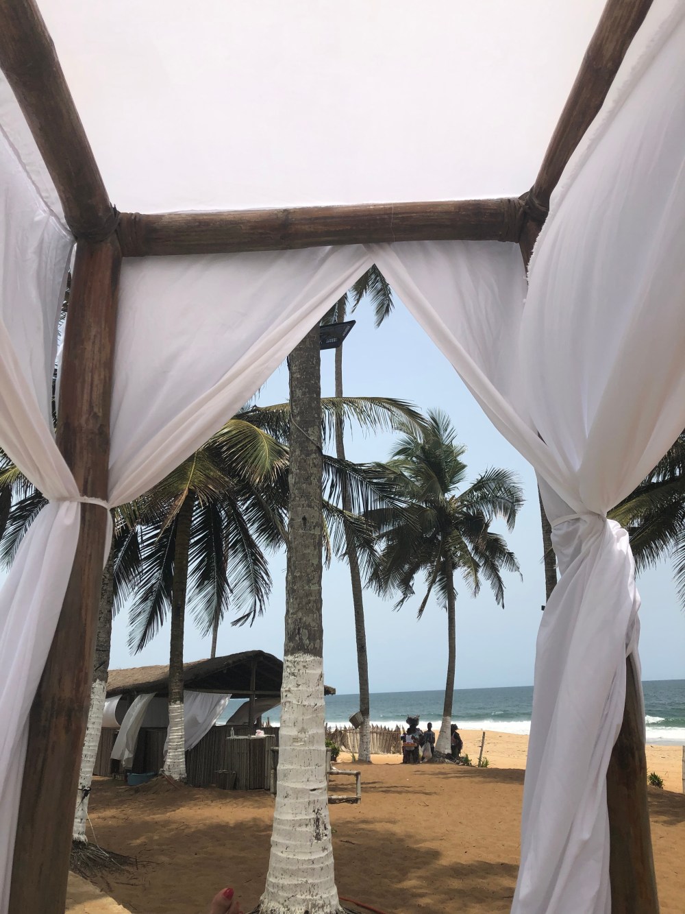 Ils m’ont donc proposé un box sur leur nouveau site, mais étant reculé de tout ( la piscine,les serveurs etc…), j’ai opté pour un petit transat au bord de la piscine dont la location pour la journée était de 1 500 fcfa.