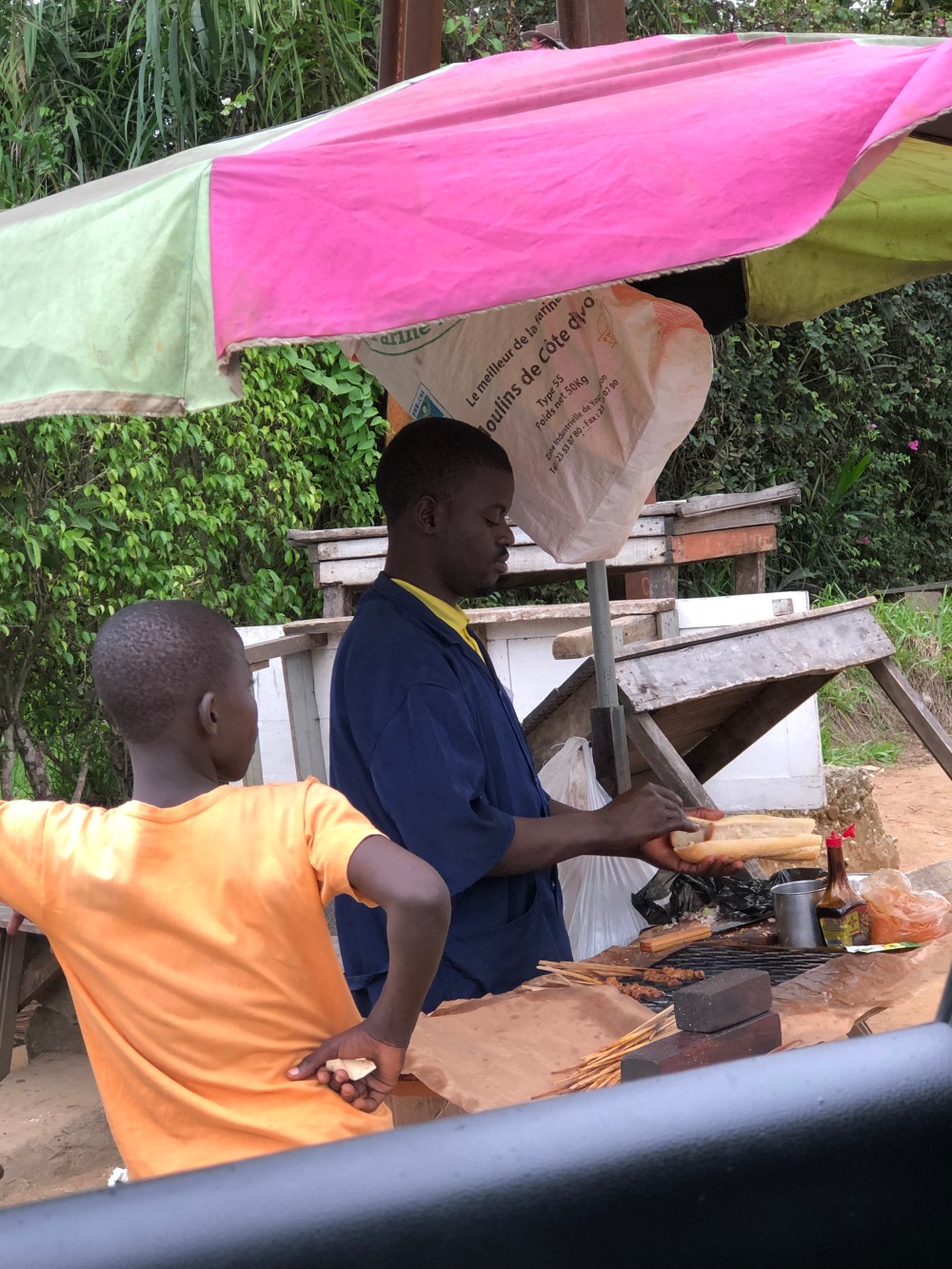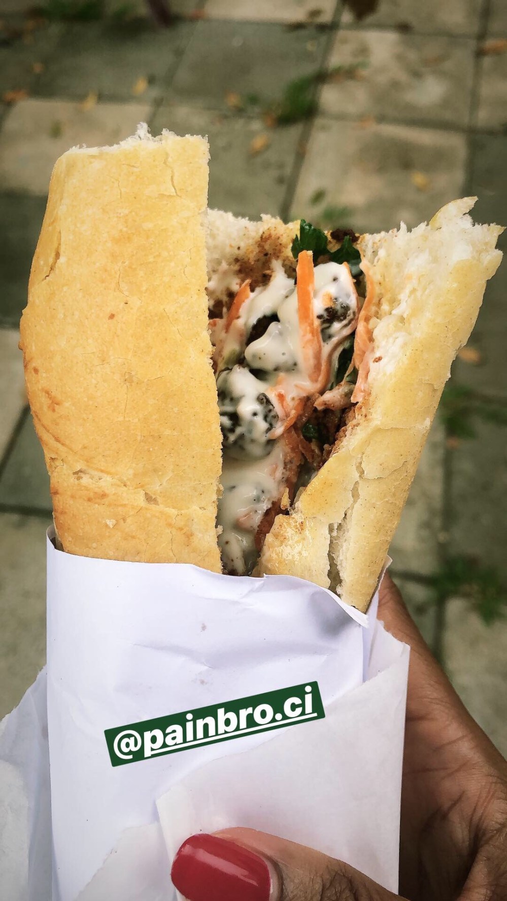 Situé juste à côté de l’Eglise St Jean à Cocody, cette adresse est une de mes préférés car elle propose du pain sur mesure, en effet vous avez la possibilité de choisir la taille de votre pain, le nombre de brochettes de boeufs( 25fcfa l’unité, mais elle sont plutôt petites), le kankankan, la mayonnaise mais aussi on peut vous rajouter des oeufs et croyez moi avec, c’est juste une tuerie.