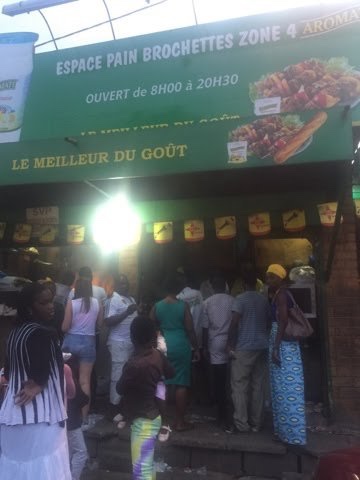 On commence la liste avec l’adresse la plus connue de la capitale d’Abidjan, il s’agit du pain brochette situé en face de la pâtisserie abidjanaise en Zone 4; Cette adresse propose deux types de pains brochettes un à 500 fcfa et un à 700 fcfa , composé de brochettes de boeuf, tomates, oignons, mayonnaise et le fameux piment en poudre appelé kankankan; Ce dernier n est pas mal mais je reste sur ma faim côté saveur.