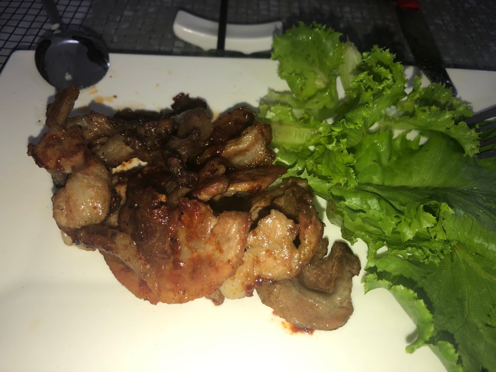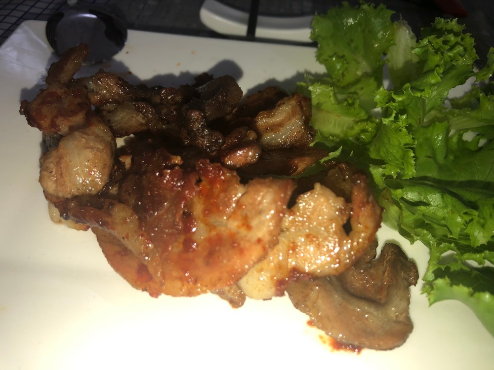 Le porc était très bien assaisonné, j’aurais par contre aimé avoir une sauce de liaison entre le riz et le porc, à défaut j’ai pu concocter une petite sauce avec la sauce soja et le piment utilisé pour l’assaisonnement de la viande( qui soit dit en passant est super bon).
