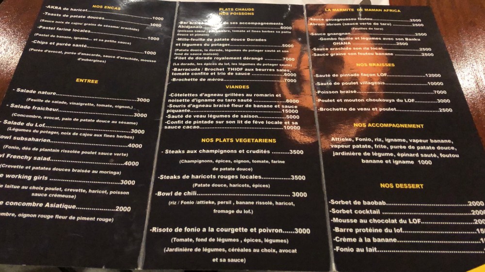 Au menu, des plats à base d’ingrédient que l’on trouve sur notre continent, des petits trésors tel que le fonio, le moringa, la banane plantain qu’ils revisitent à leur sauce afin de nous proposer des plats assez originaux.
