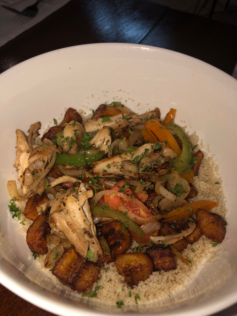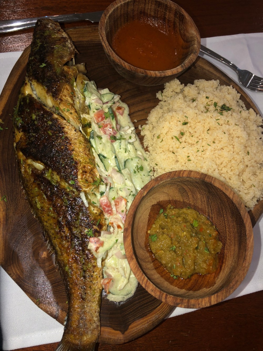 J’ai particulièrement aimé cette entrée, intitulée , bowl subsaharian, composée de fonio, banane plantain, petits oignons et des émincés de poulet auxquels on y ajoute une sauce à base de notre or vert: le moringa; Cette entrée est un pur délice.