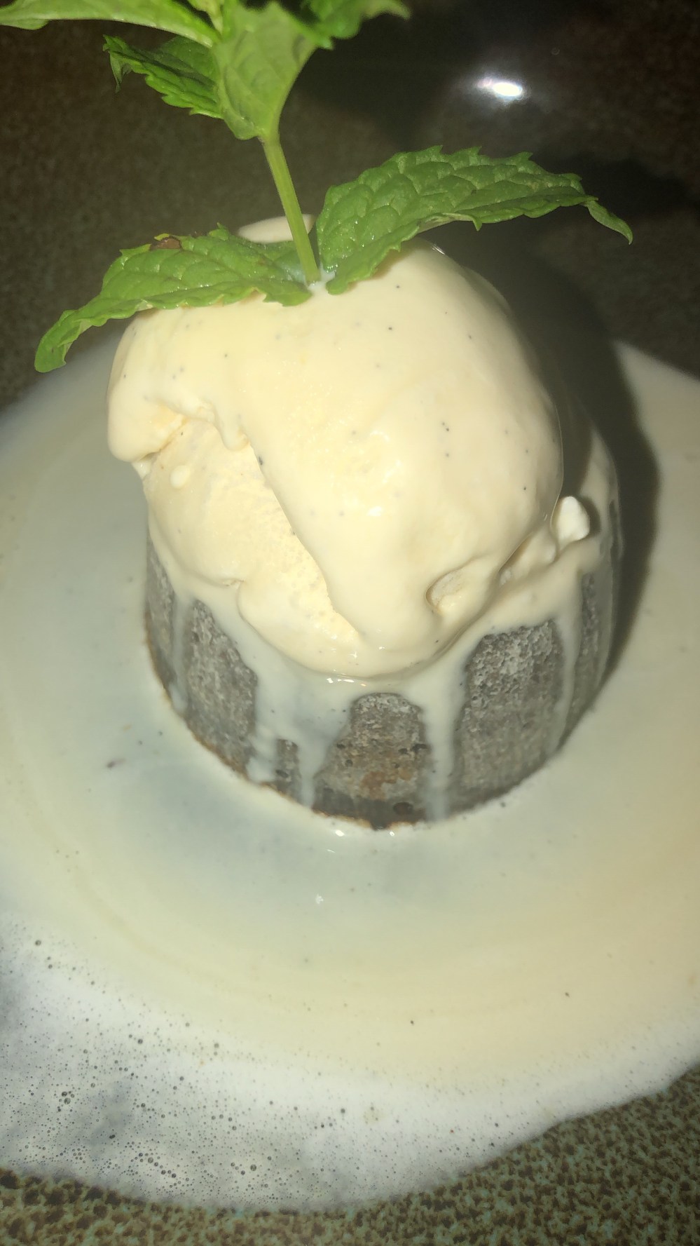 En dessert, je suis allée sur un grand classique, le fondant au chocolat et sa boule de glace vanille qui était réussit.