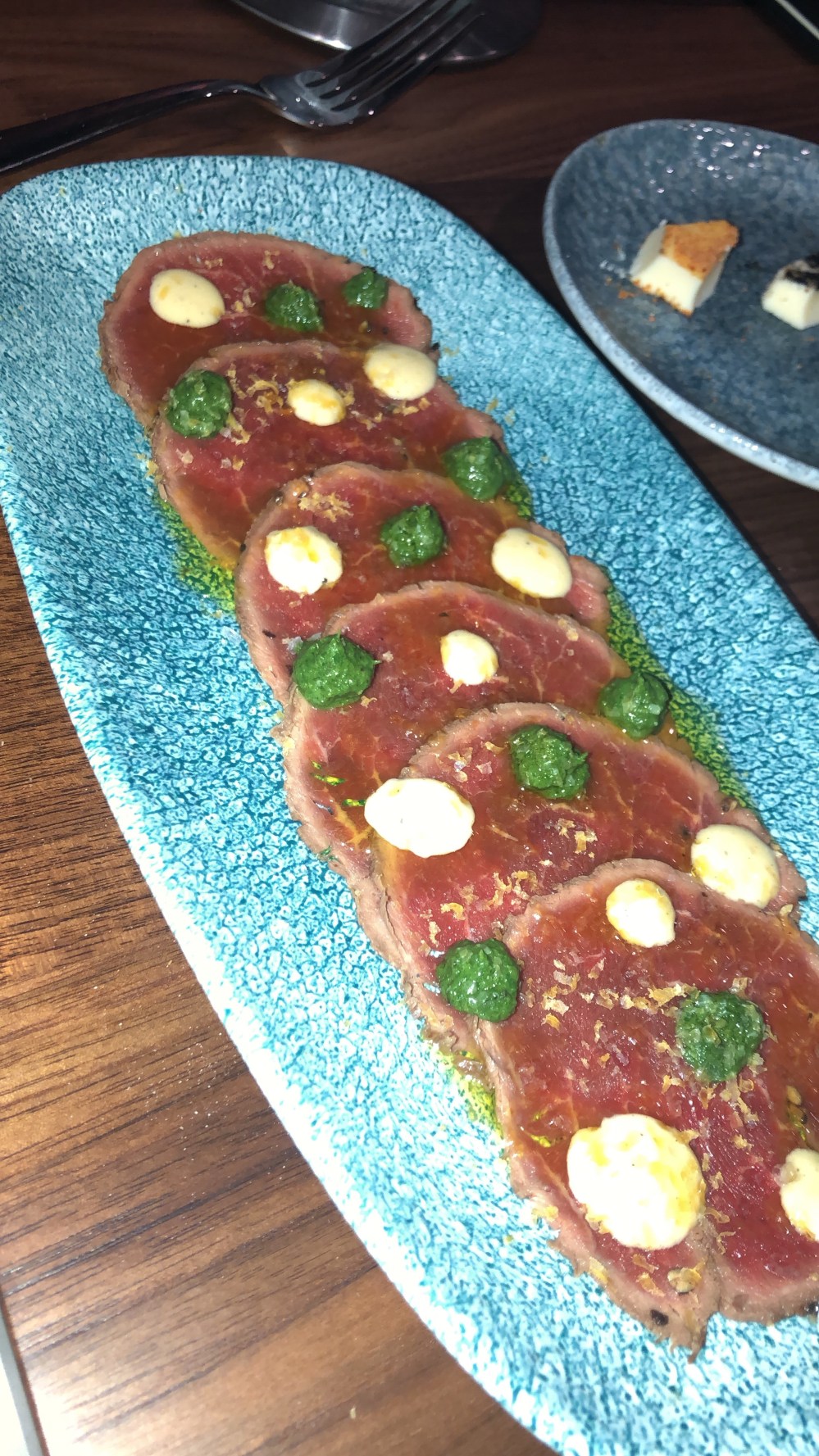 La carte du restaurant est semi- gastronomiques, vu les quantités servis; J ai opté en entrée pour les raviolis vapeurs au porc et le carpaccio de boeuf qui étaient supers bons mais les raviolis étaient salés.