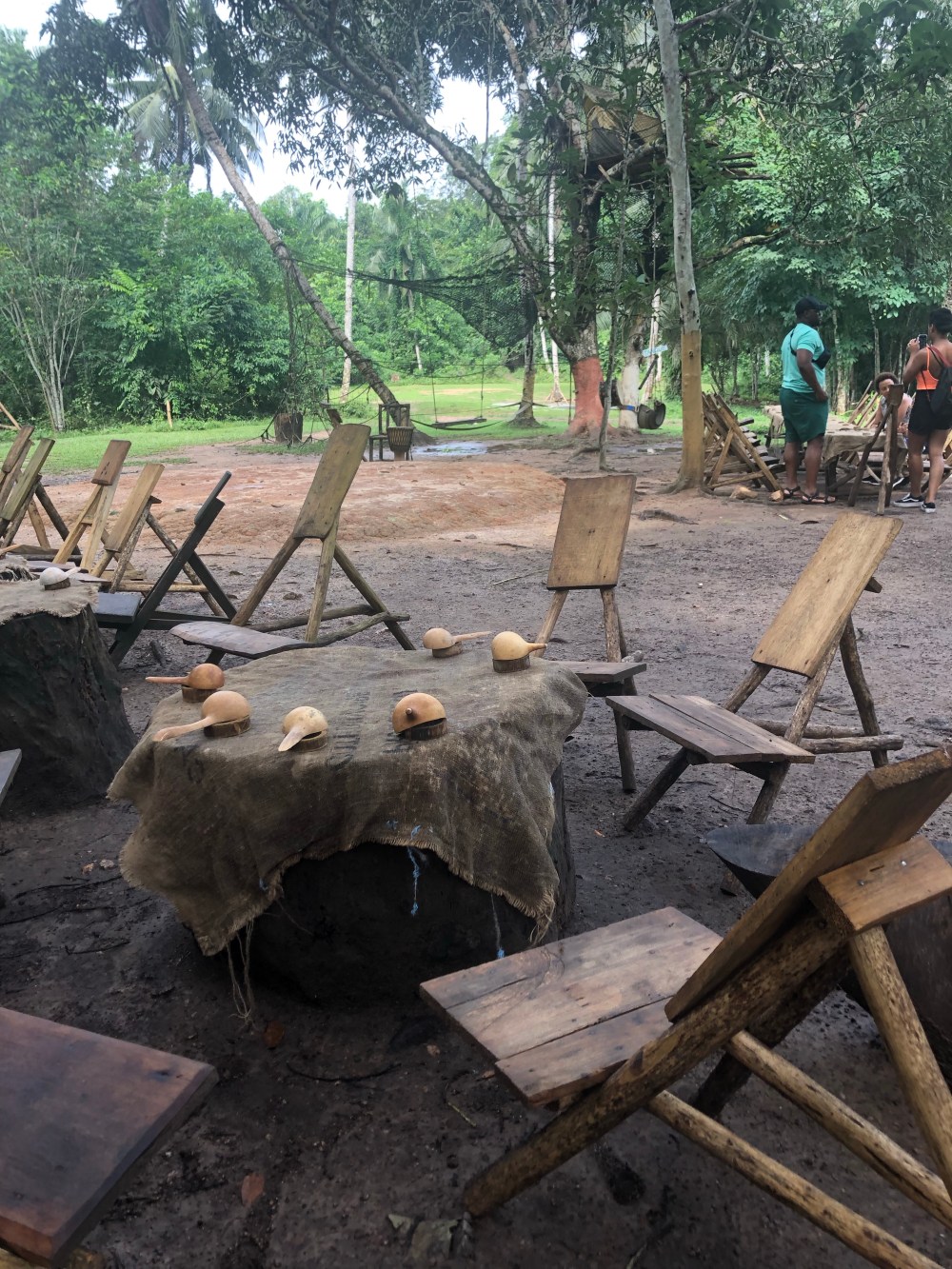 - Un copieux repas appelé “ Est ce que tu pourras? “, le buffet était garnis et super bon. La dégustation s est faites dans des feuilles de bananes et des talliers, bien sur avec les doigts sinon se ne serait pas un retour aux sources!