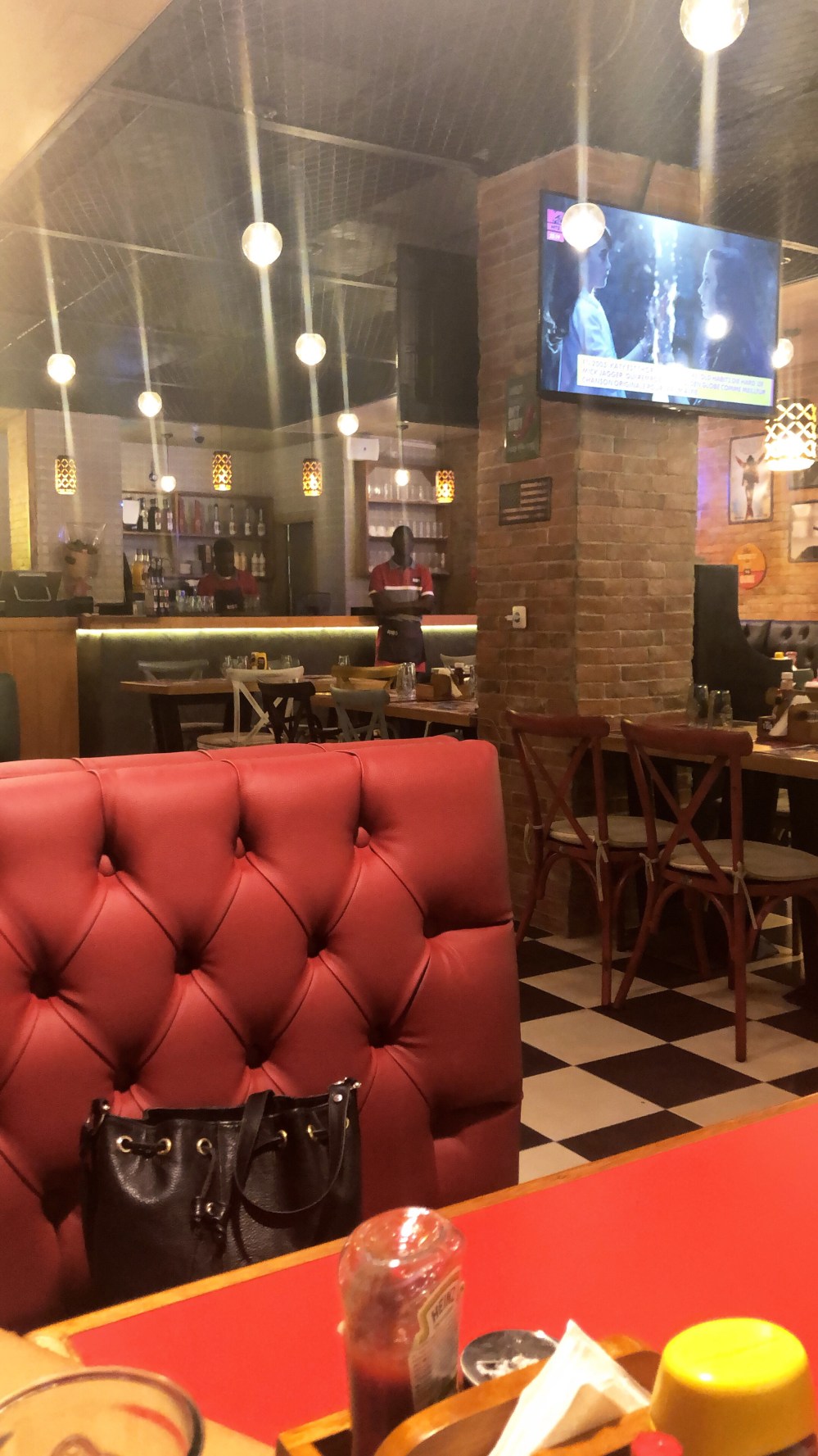 Ambiance américaine, déco branchée assez typique et similaire aux restos « junk foods » et « breakfast » sur les grandes routes des Etats Unis ».